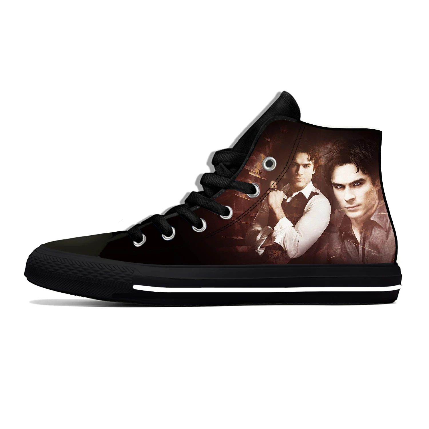 Модные Повседневные тканевые кроссовки с высоким берцем, Дневники вампира, Деймон Сальваторе, легкие дышащие кроссовки с 3D принтом для мужчин и женщин