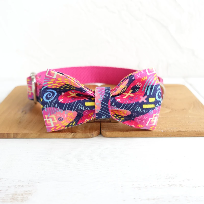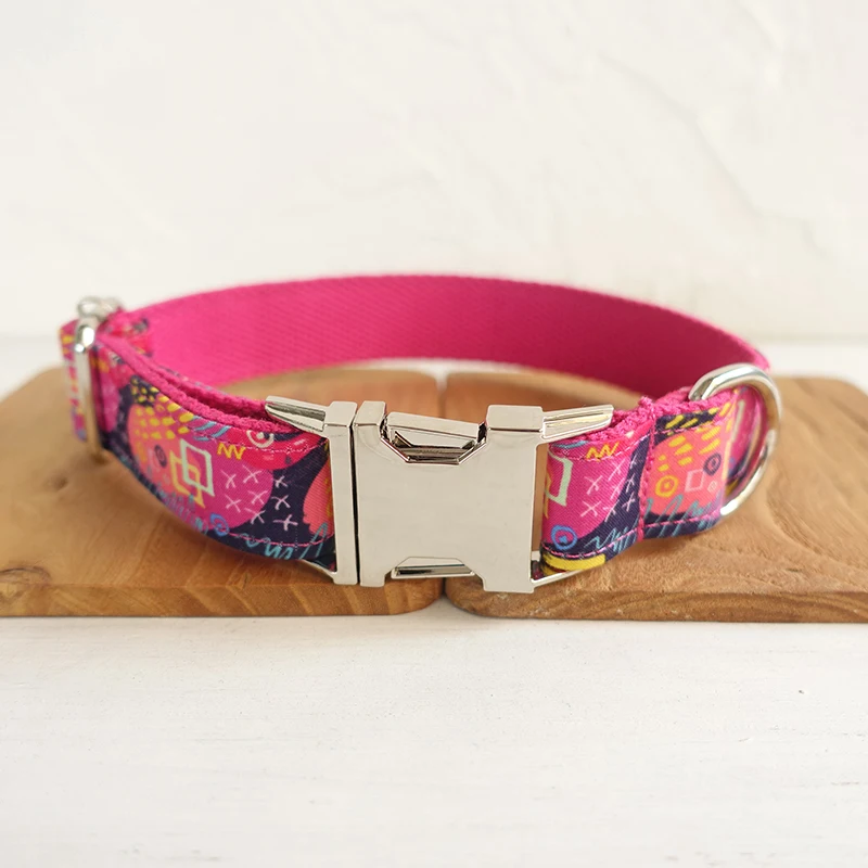 Регулируемый Собачий Ошейник, металлическая гравировка Id, пряжка, ожерелье для домашних животных, розовый граффити, шейный ремешок, поводок