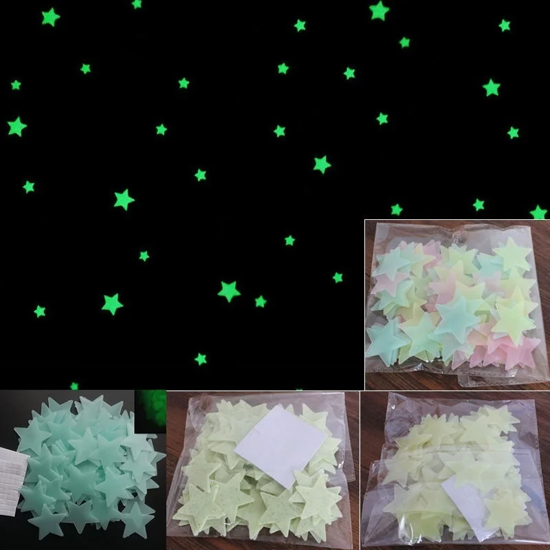 100 шт. в комплекте, детское Спальня флуоресцентный светится в темноте звезды Светящиеся Настенные наклейки Звезды Световой светящиеся стикеры цвет