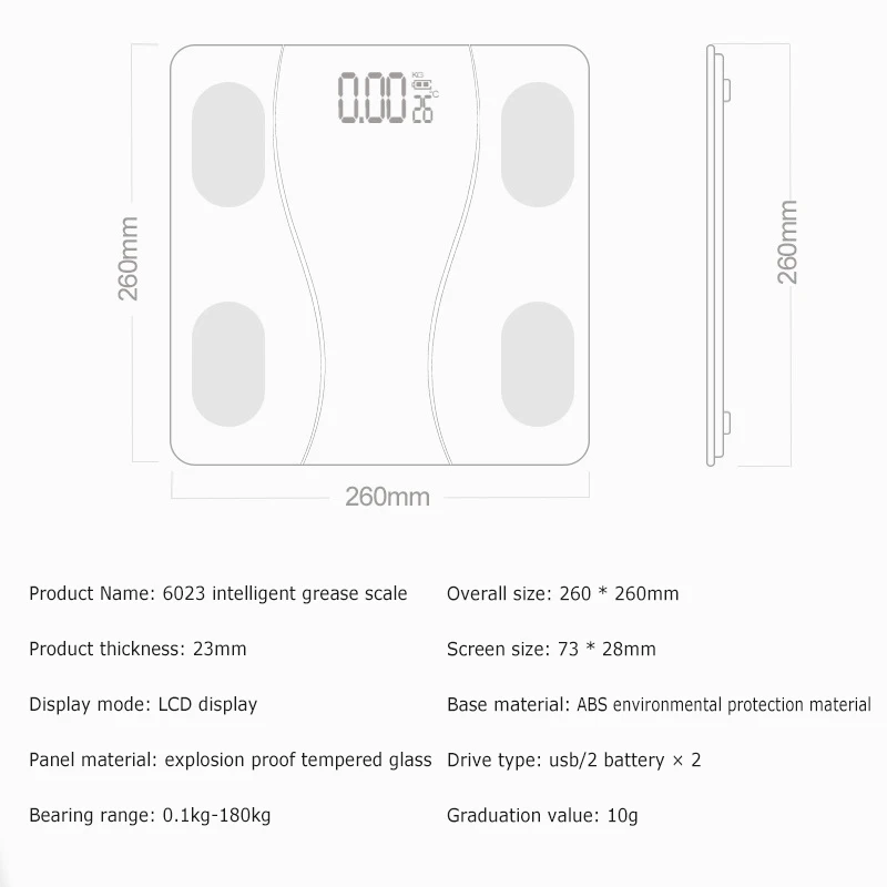Умные весы с анализатором жира, беспроводные, цифровые, с приложением Bluetooth
