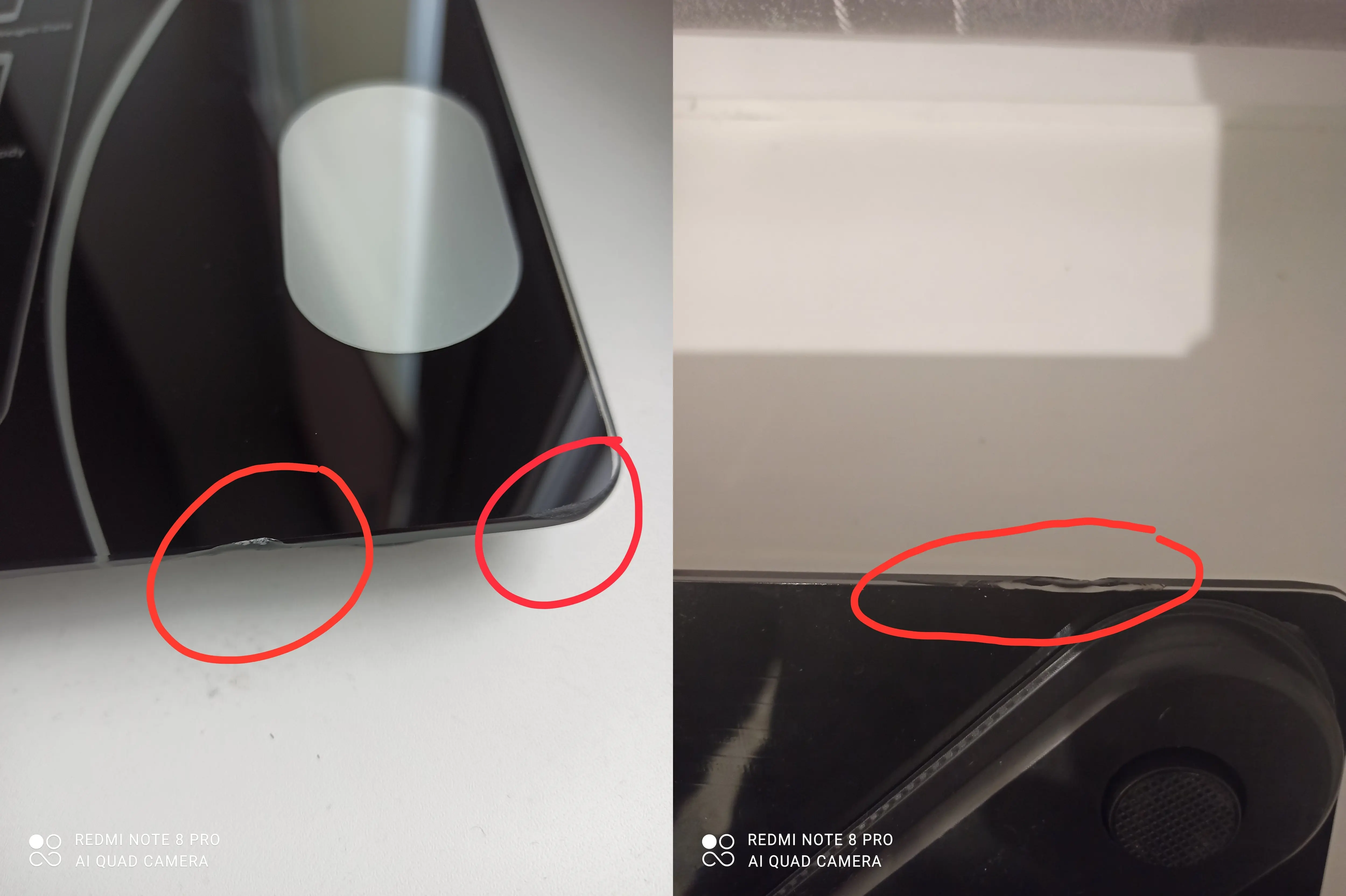 Весы пришли со сколами по краям. Продавец ответил, что эти повреждения произошли во время транспортировки. Но по моему мнению, этого не могло случиться, потому что в местах сколов товар был надежно защищен толстым слоем пенопласта, значит весы отправили уже с дефектом. В следующий раз обязательно буду снимать видео распаковки.