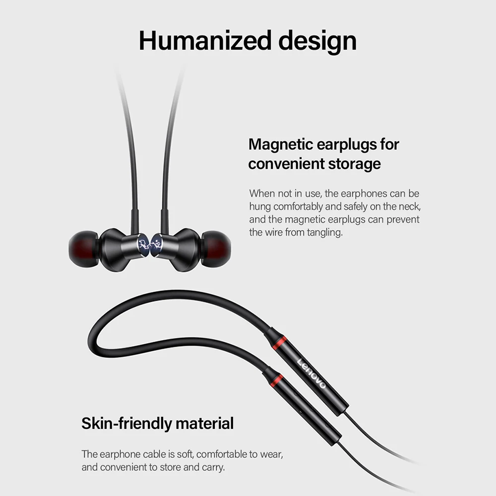 Особенности:Используется высокопроизводительный чип BT 5,0, низкое энергопотребление, низкая задержка, стабильная передача сигнала.Используется композитная диафрагма из углеродного волокна и акустическая технология большой подвижной катушки, которая может восстановить потрясающее качество звука высоких, средних и низких частот.Эргономичный дизайн, наклон 45 °, облегающий ушной канал, прочный и удобный, устойчивый к падению. Мягкий материал ТПЭ, приятный для кожи и удобный.Магнитная конструкция, снимает утомительные шаги хранения, нелегко наматывать и терять.Интеллектуальное проводное управление, реализует многофункциональное управление воспроизведением музыки, звонками и т. д.Уровень водонепроницаемости IPX5, не нужно беспокоиться о повреждении наушников потоотделением.Встроенный аккумулятор большой емкости обеспечивает длительный срок службы, 8 часов воспроизведения музыки, не нужно беспокоиться о нехватке электроэнергии. Спецификация:Бренд: LenovoМодель: HE05XЦвет: черный/белый/красный (Опционально)Версия BT: V5.0Эффективное расстояние: около 10 м (без барьеров)Порт зарядки: Micro USBВремя зарядки: около 2 часовВремя звонка: около 6 часовВремя прослушивания музыки: около 8 часовИндикатор состояния: RGB светодиодныйРабочая температура: 15 ~ 40 ℃Температура хранения: 20 ~ 60 ℃ Упаковочный лист:1 * наушники1 * зарядный кабель2 * пара берушей1 * Руководство пользователя