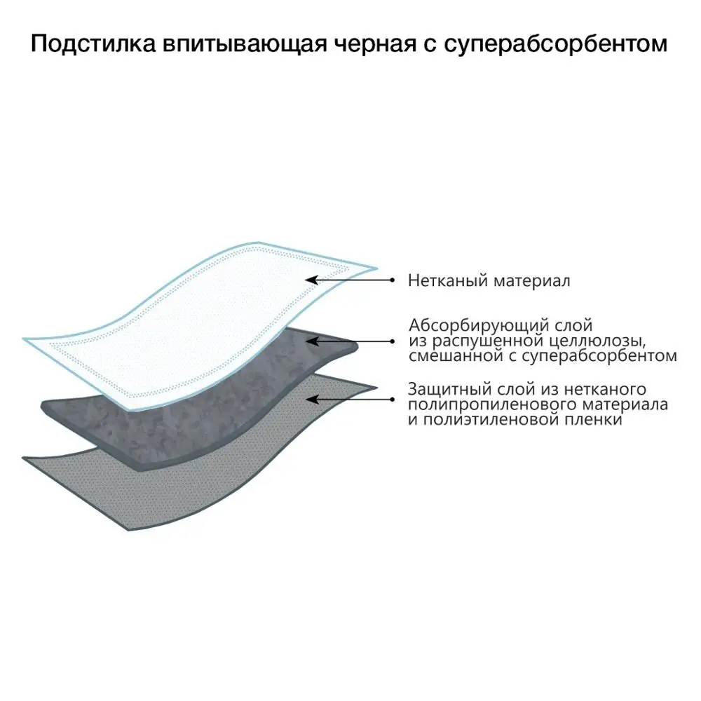 Серия черных подстилок от "Доброзвериков" особенно хороша тем, что благодаря темному цвету на них не видно пятен. Это приятно с эстетической точки зрения, к тому же, данные изделия можно менять немного реже, чем обычные подстилки, ведь загрязнения не бросаются в глаза, а значит, черные подстилки - еще и экономичный продукт. Все впитывающие подстилки, производимые компанией "Пелигрин Матен", прошли международную сертификацию (EC Declaration of conformity) и соответствуют европейским стандартам качества. На черных пеленок не видно пятен, что приятно с эстетической точки зрения. Поверхность из высококачественного нетканого материала быстро проводит жидкость внутрь подстилки. Для впитывающего слоя используется только натуральная распушенная целлюлоза, отбеленная без использования хлора. Полиэтиленовое основание предотвращает протекание жидкости и помогает надежно удержать влагу внутри. Подстилки легко менять - справится даже ребёнок! Идеальное соотношение цены и качества.