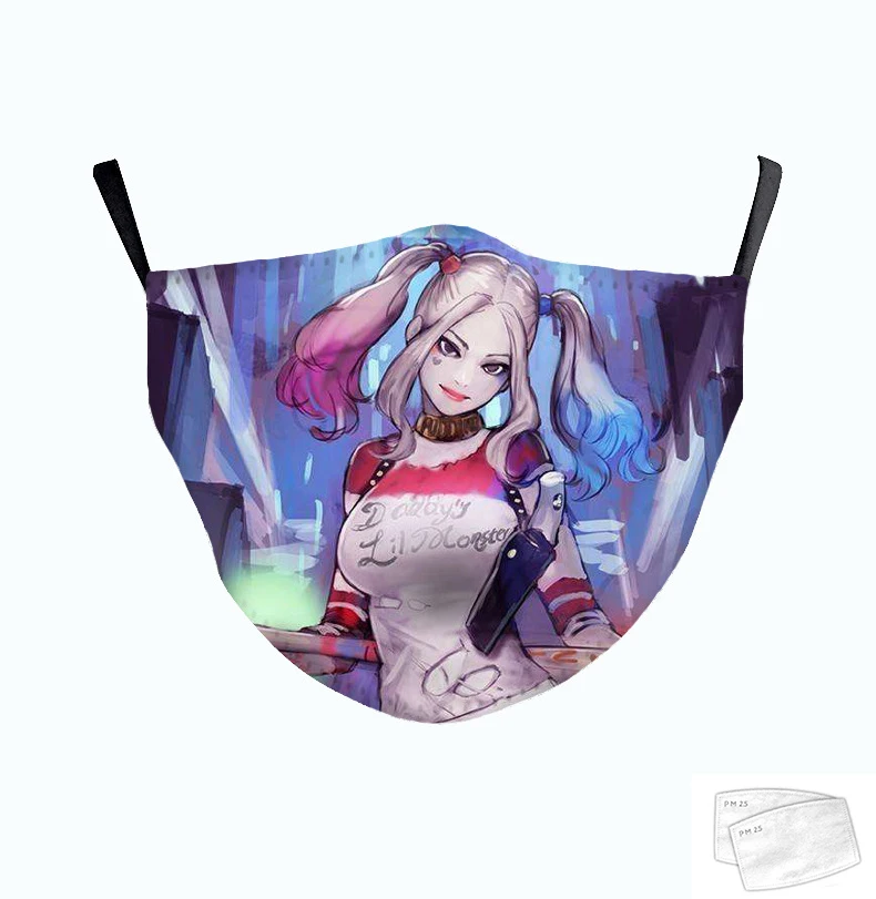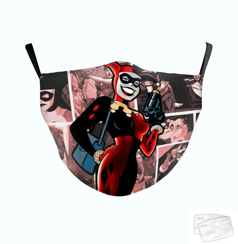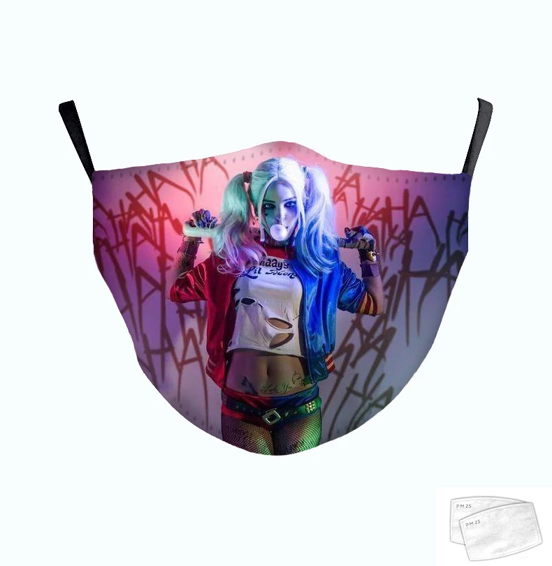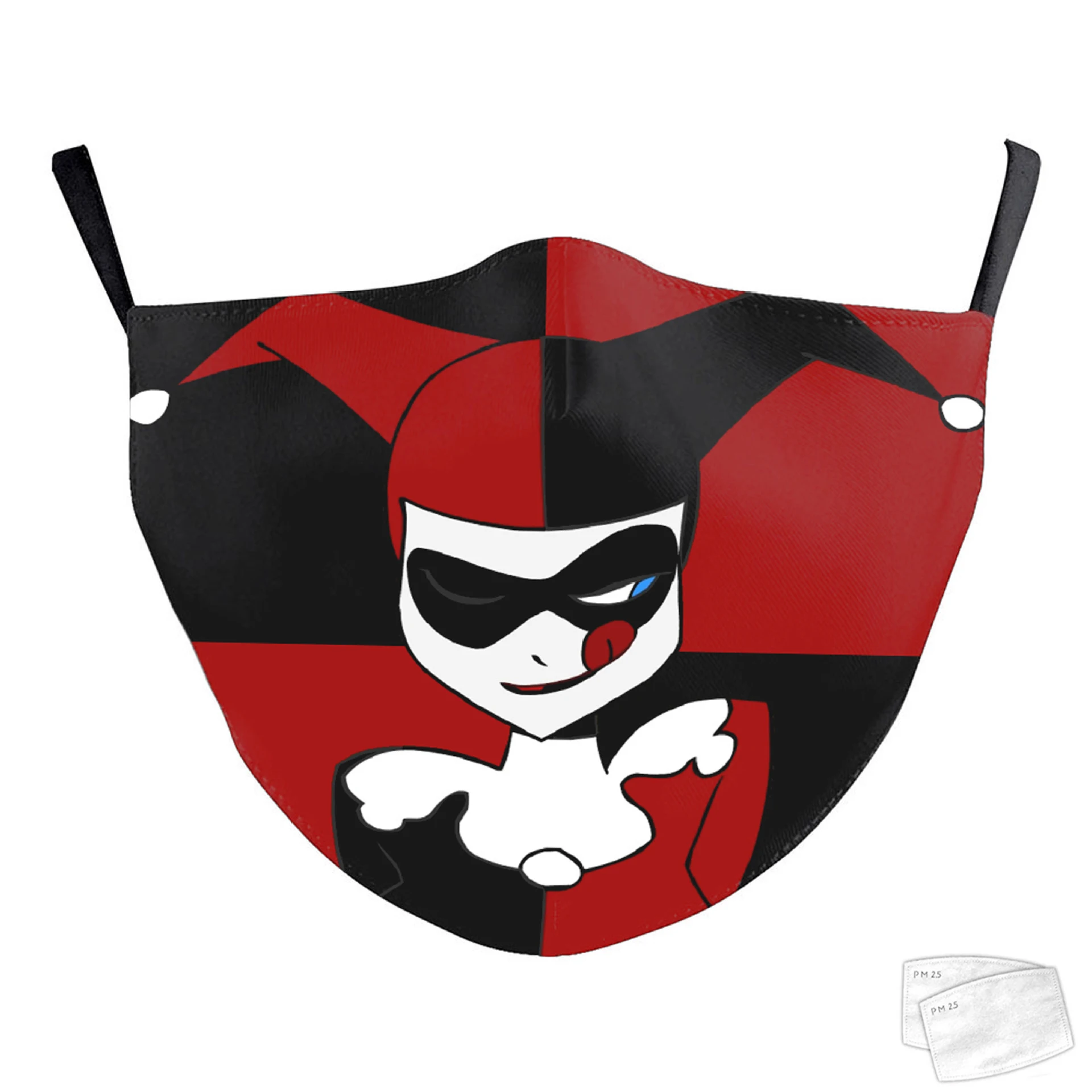 Маска для взрослых Harley Quinn Patten, моющаяся многоразовая маска PM2.5 от пыли, маска клоуна с 2 фильтрами, регулируемая, 1 шт.