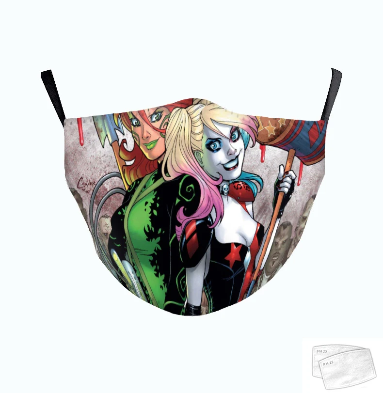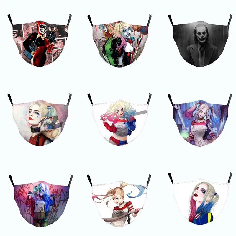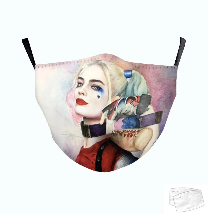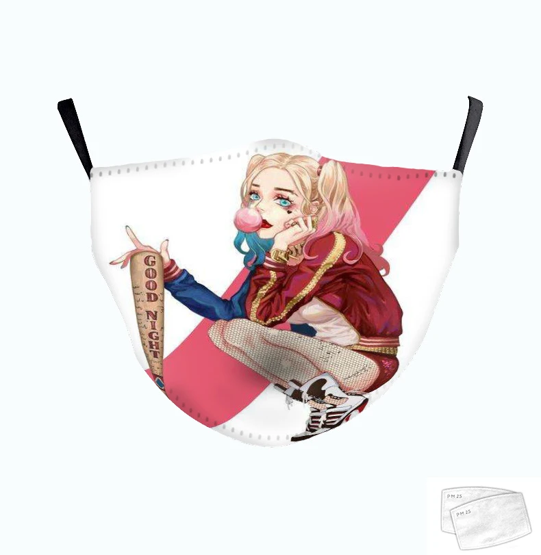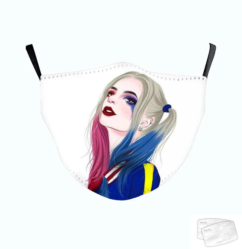 Маска для взрослых Harley Quinn Patten, моющаяся многоразовая маска PM2.5 от пыли, маска клоуна с 2 фильтрами, регулируемая, 1 шт.