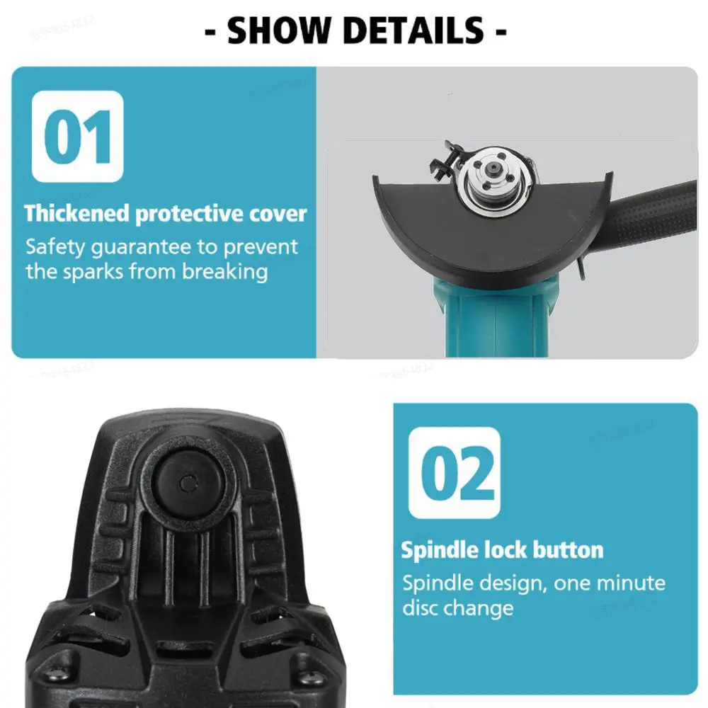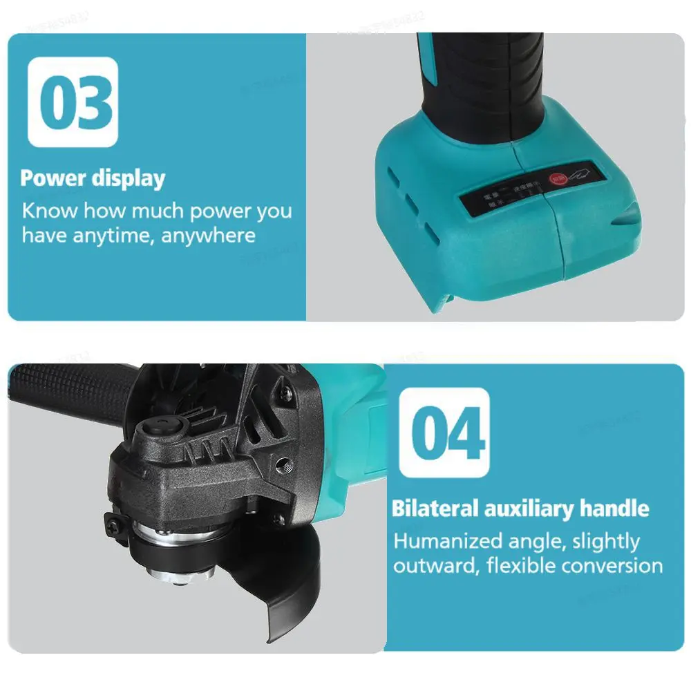 Аккумуляторная ударная шлифовальная машина, бесщеточная угловая шлифовальная машина, мощность 800 Вт, 100 мм, 3 скорости, для электроинструментов Makita