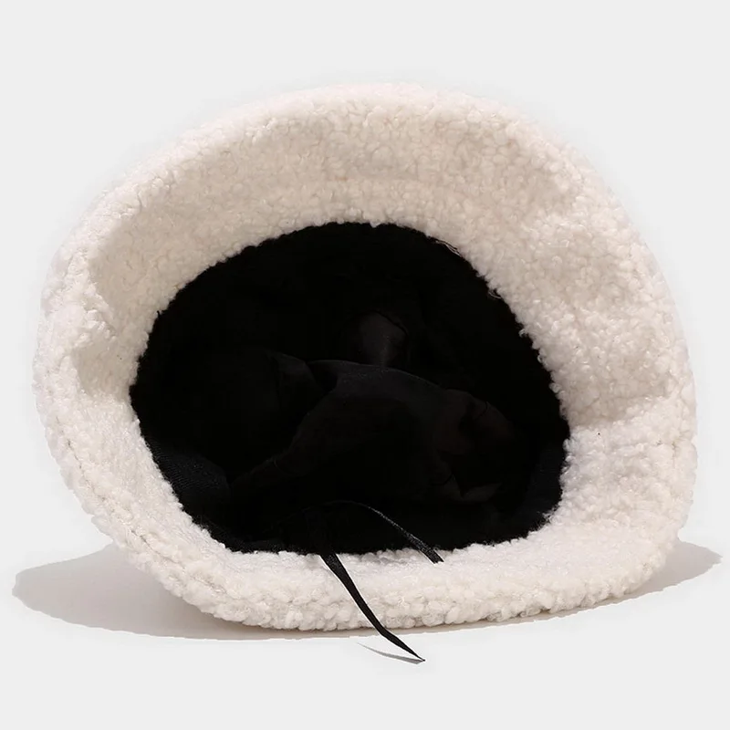 Solid Artificial Fur Warm Female Capp Faux Fur Winter Bucket Hat for Women
