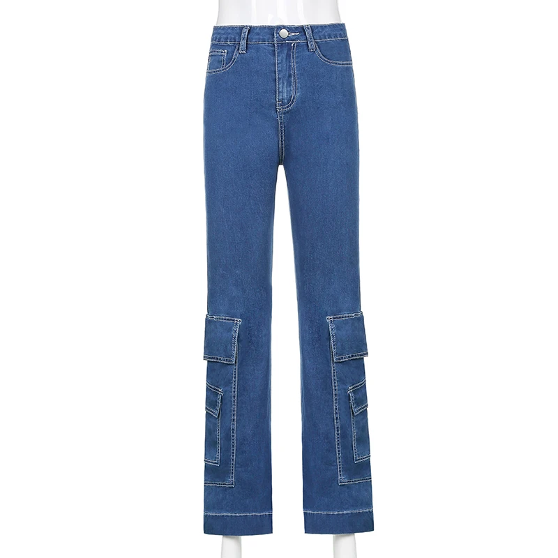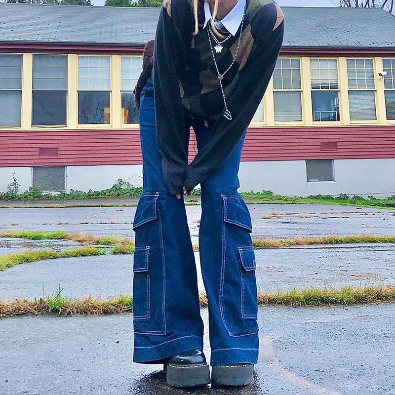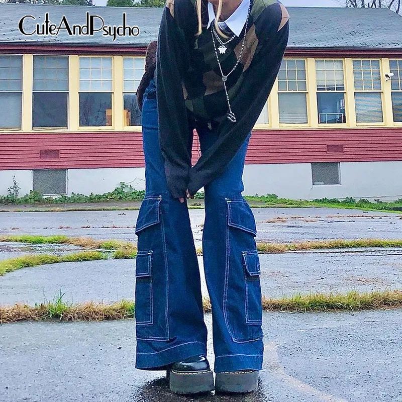 Джоггеры Женские винтажные в уличном стиле, популярные мешковатые джинсовые брюки-оверсайз с большими карманами, спортивные штаны с завышенной талией, брюки из денима в стиле Харадзюку, cuteandpsy