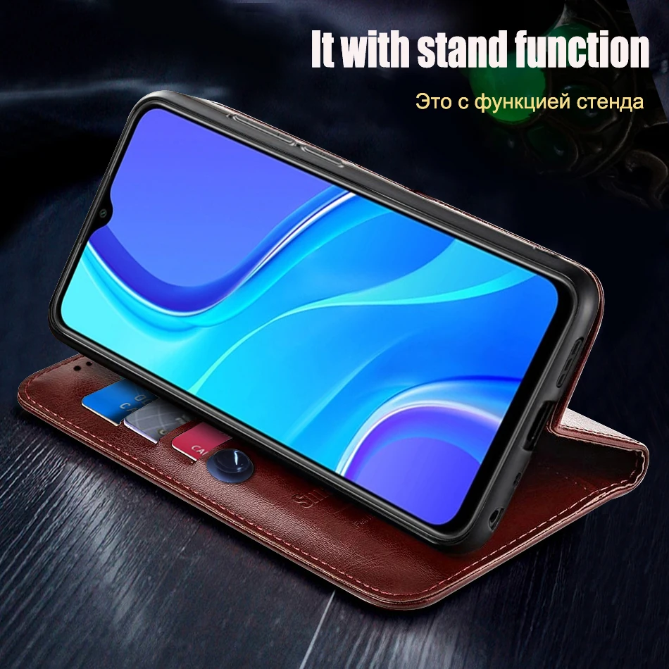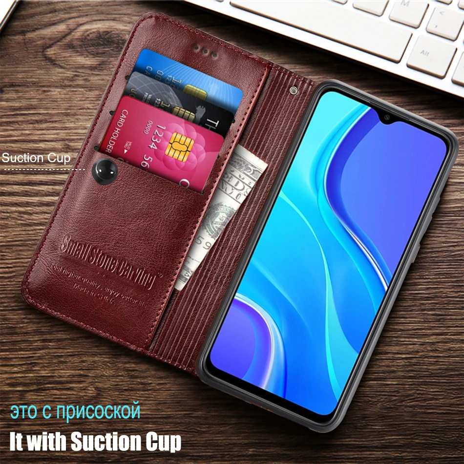 Чехол-книжка для Xiaomi Redmi 9, кожаный, с отделением-бумажником