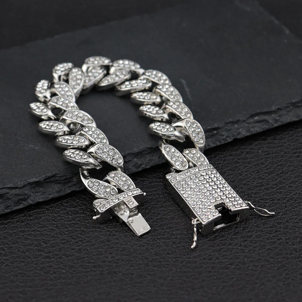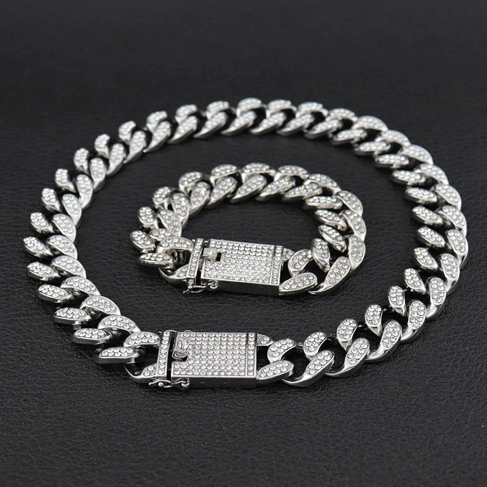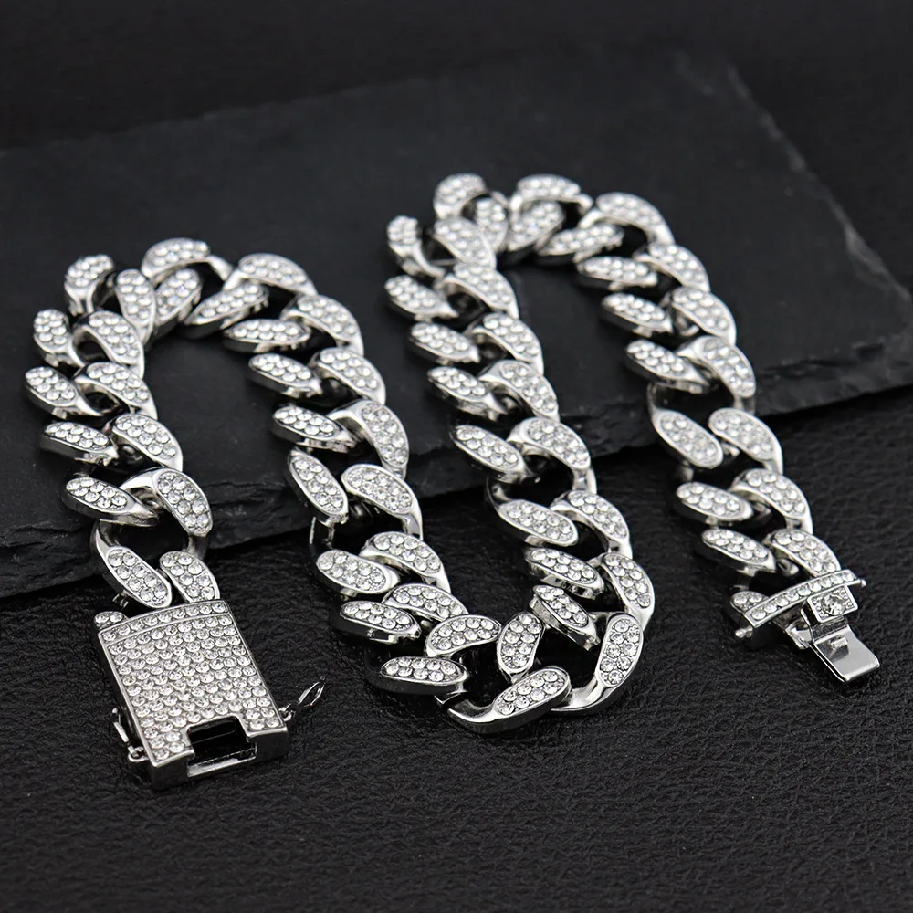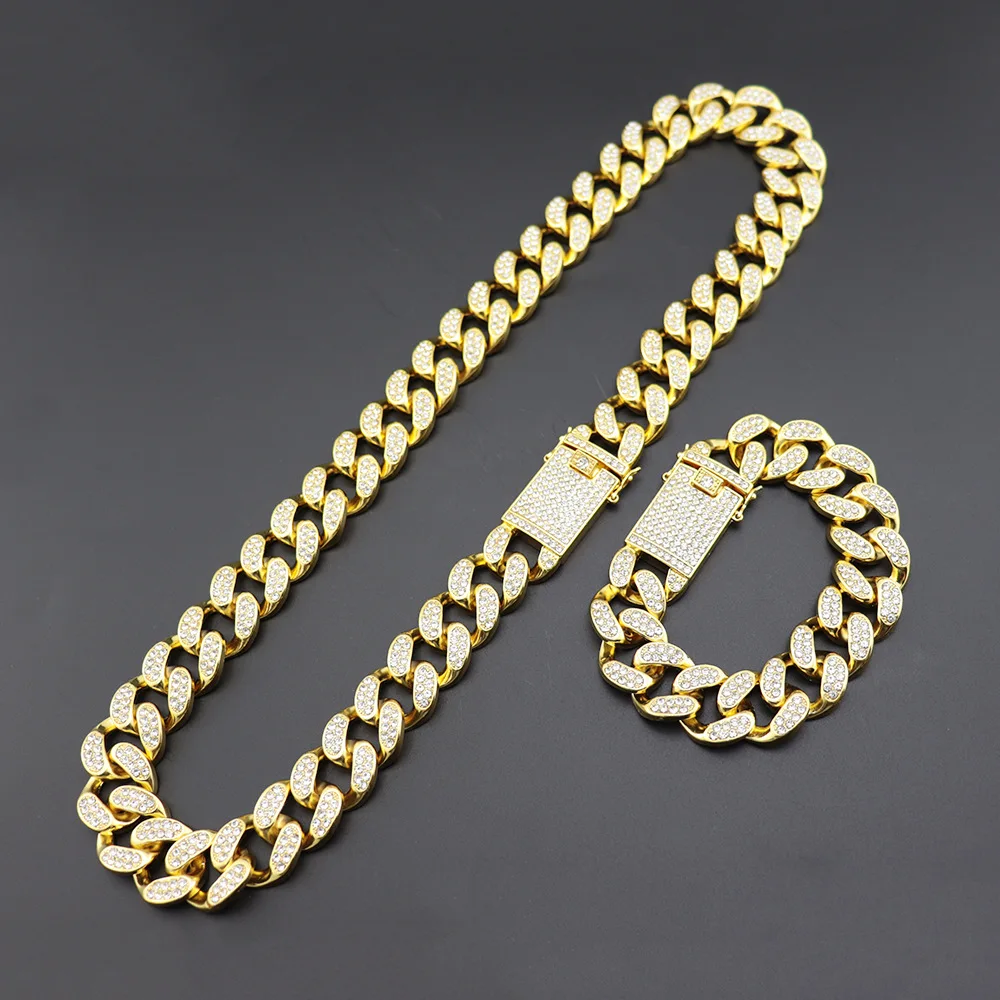Комплект ювелирных украшений, ожерелье + часы + браслет, кубинский хип-хоп, 20 мм, Майами