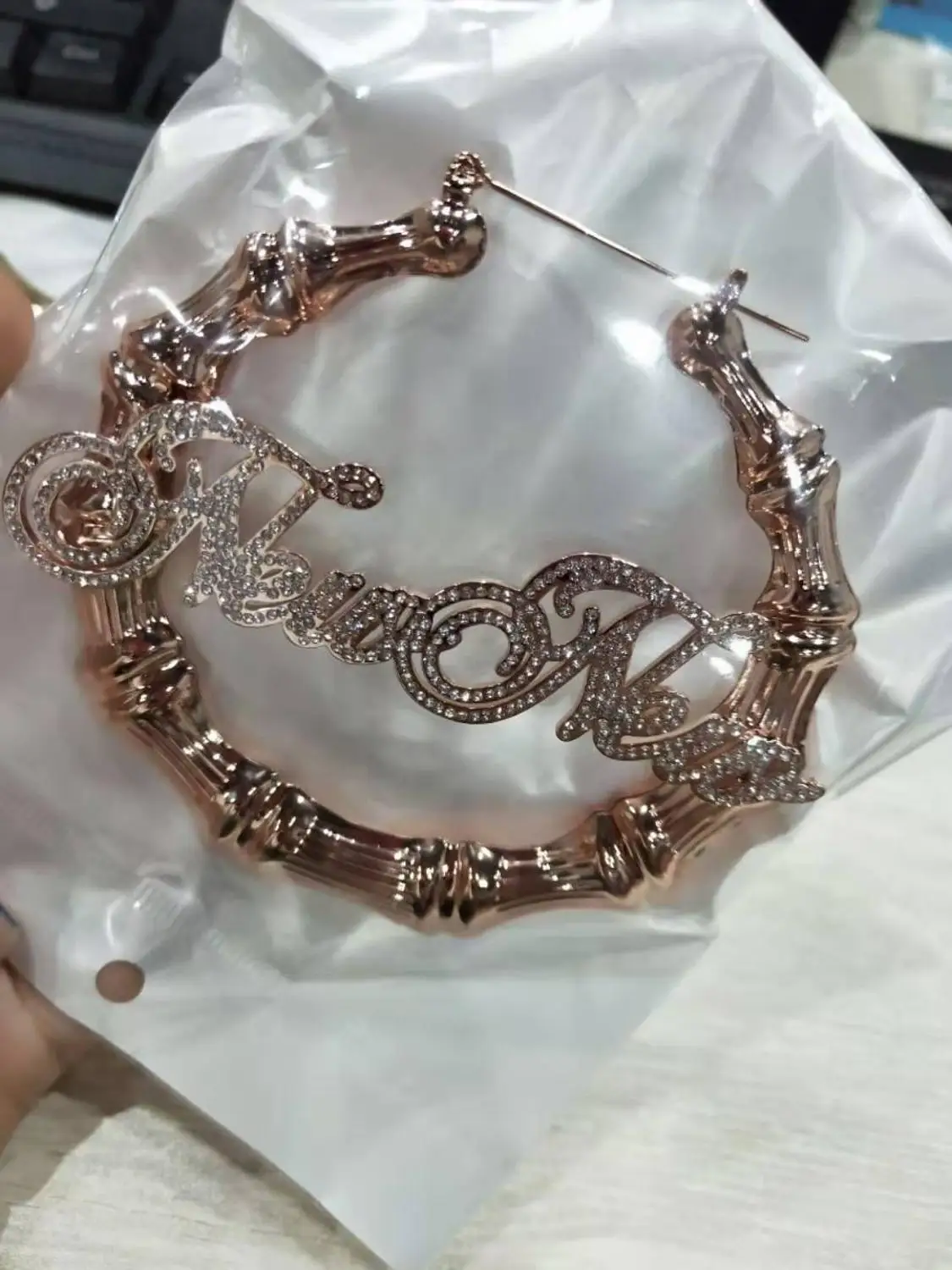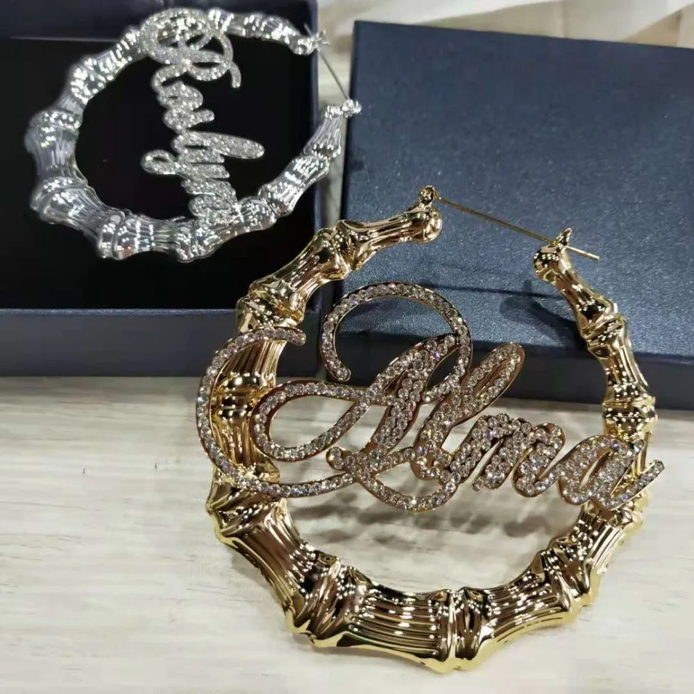 DOREMI Bling именные Бамбуковые серьги на заказ трапециевидные кольца бамбуковые именные серьги буквы большие персонализированные именные серьги для женщин подарок