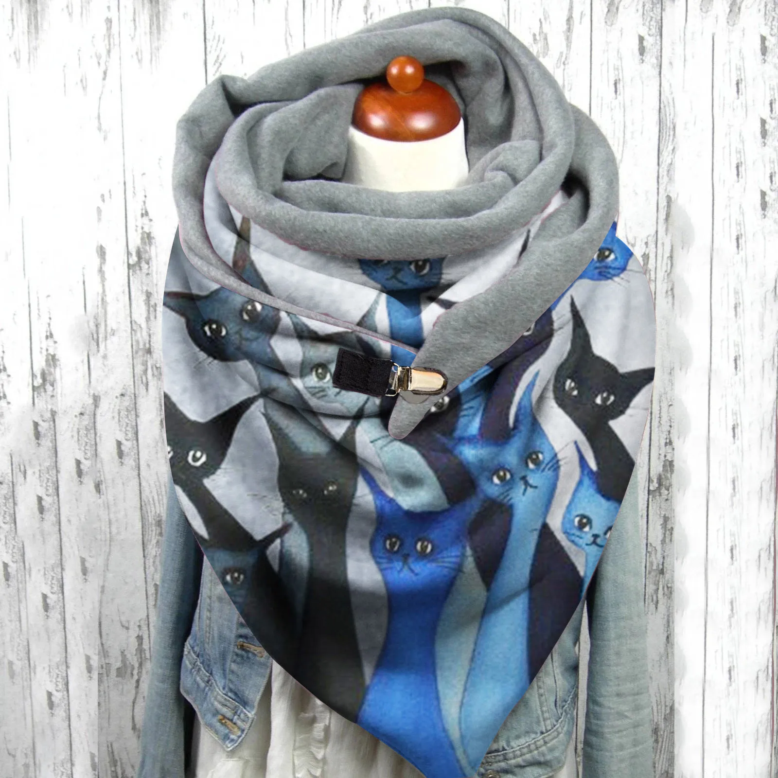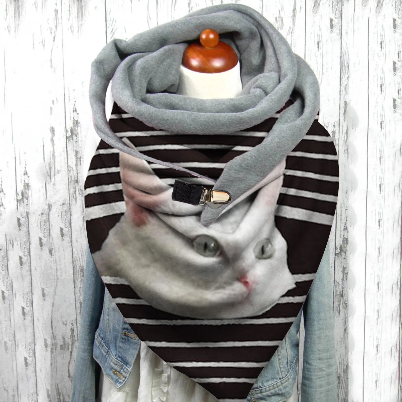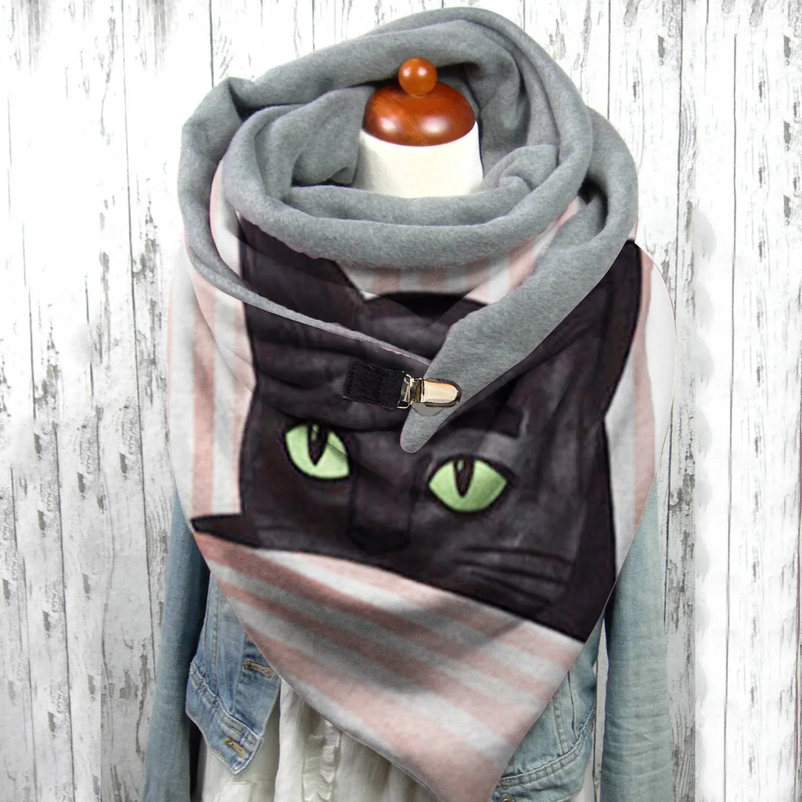 Шарф женский, зимний, с принтом кота, на пуговицах