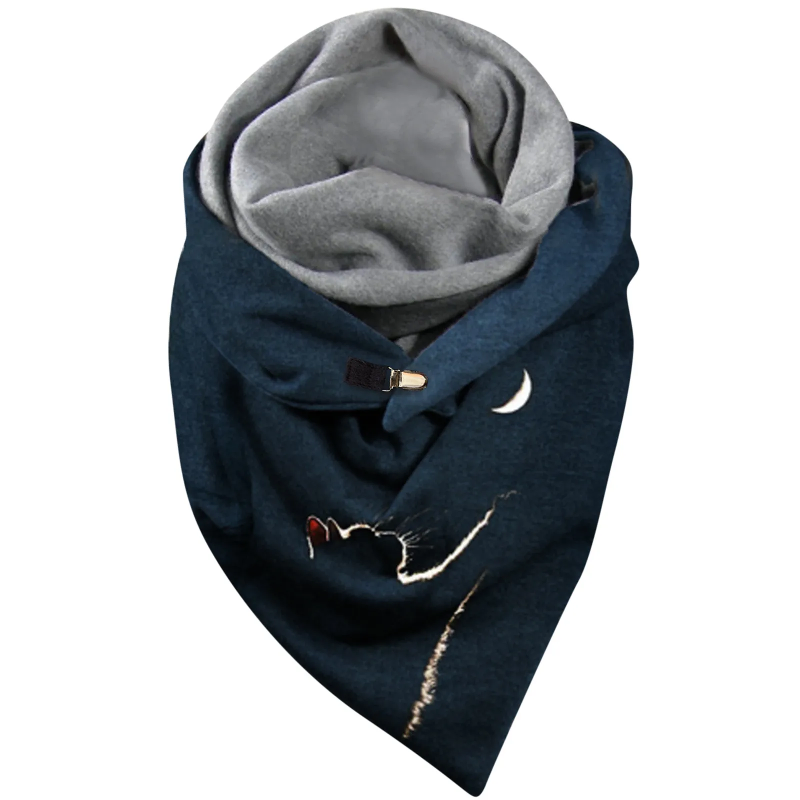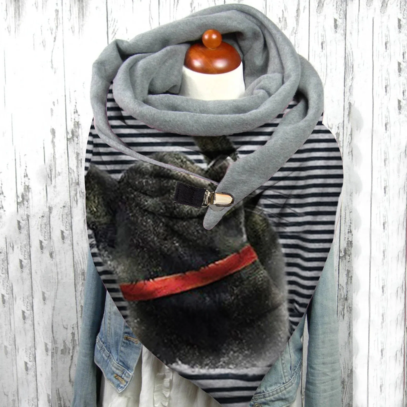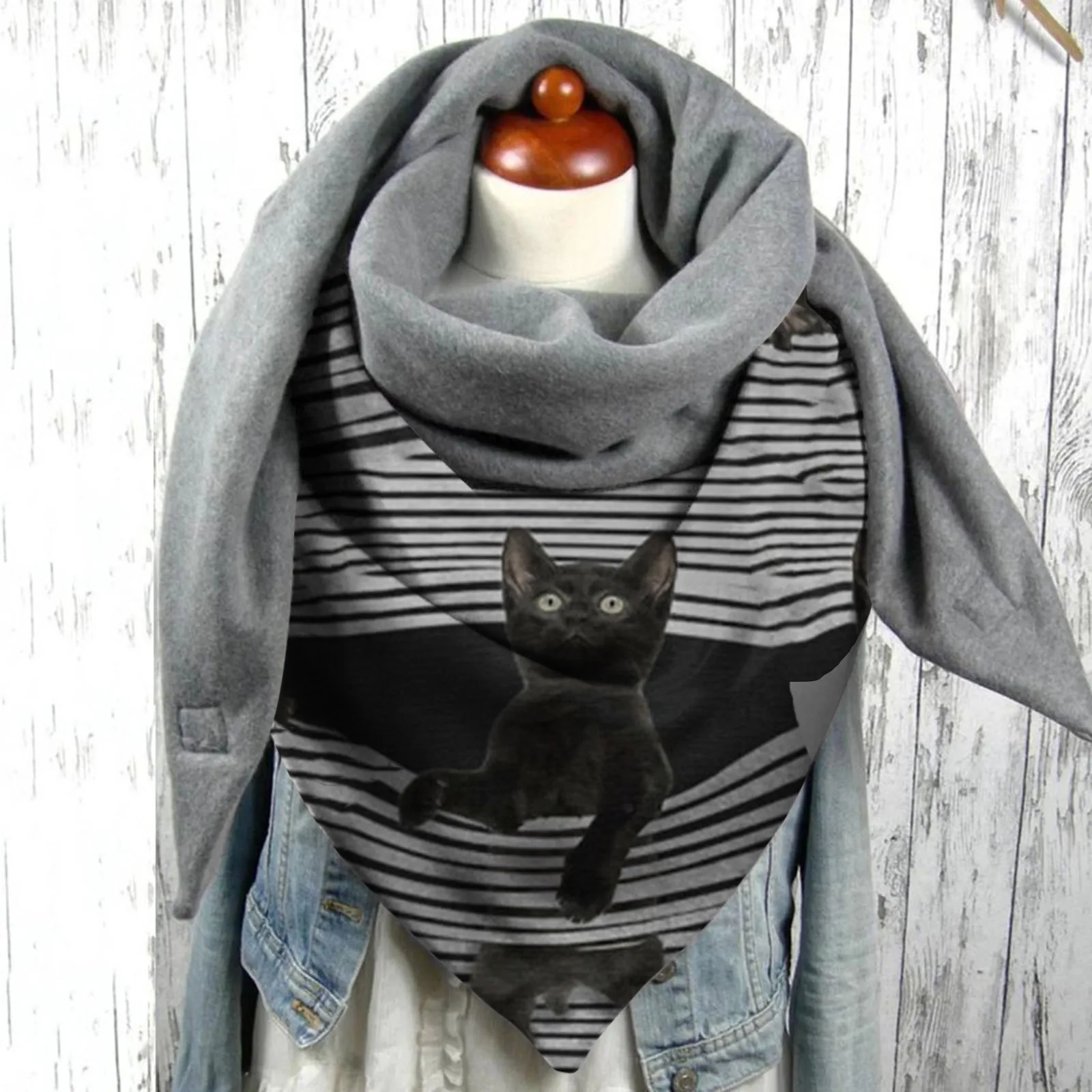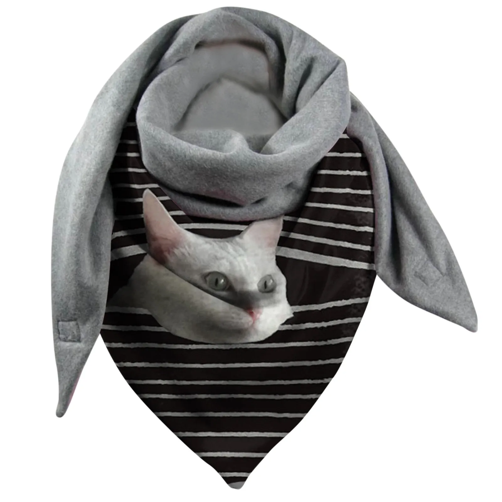 Шарф женский, зимний, с принтом кота, на пуговицах