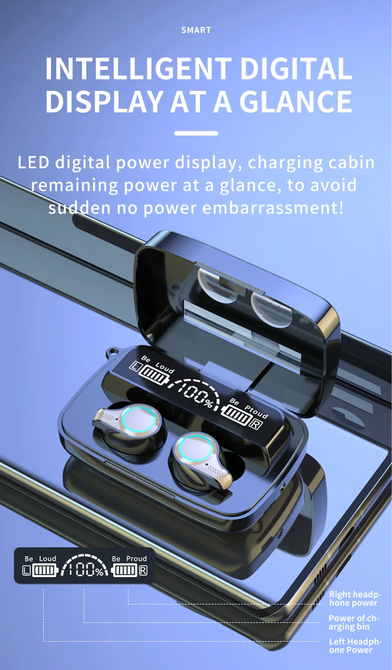 TWS Bluetooth-наушники с зарядным футляром, 3500 мАч