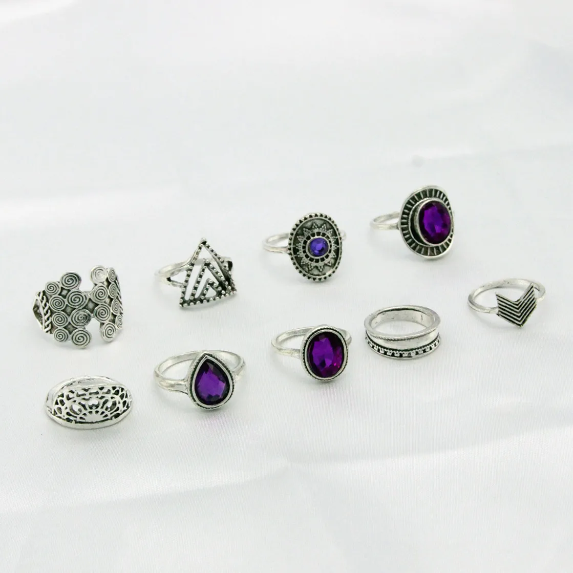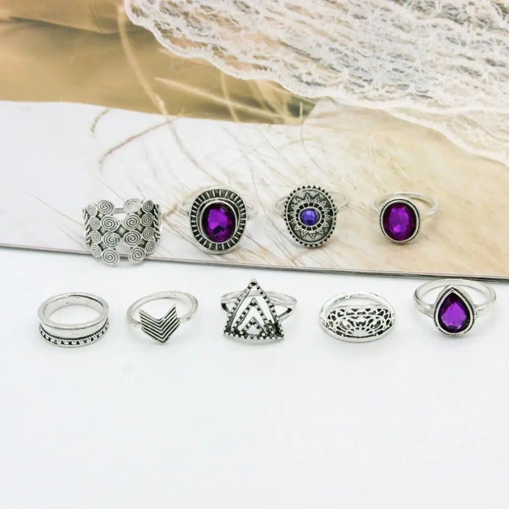 Набор из 9 оригинальных креативных колец на костяшки пальцев с резными цветамикаплями водыгеометрическими фигурами и инкрустацией, акриловый камень дизайн