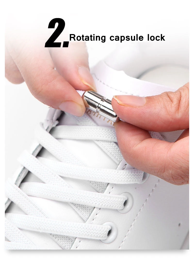 Шнурки эластичные плоские без завязывания, модные, с быстрым металлическим замком, для детей и взрослых, безопасные для ленивых кроссовок, унисекс, 1 пара