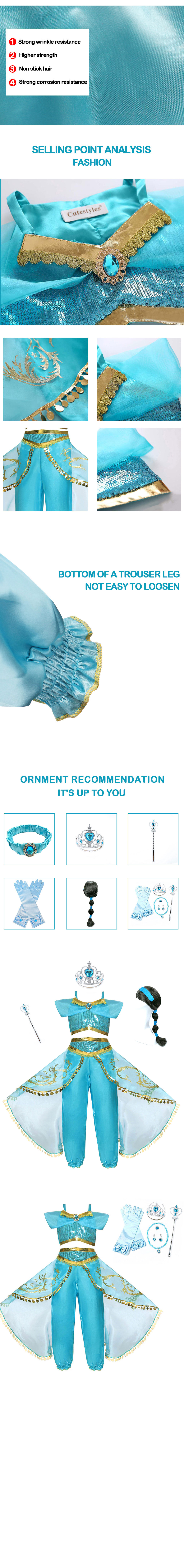Детское платье принцессы жасмин костюм Арабской принцессы для девочек Жасмин Косплей Костюм Аладдина детский маскарадный фантазийный карнавальный костюм