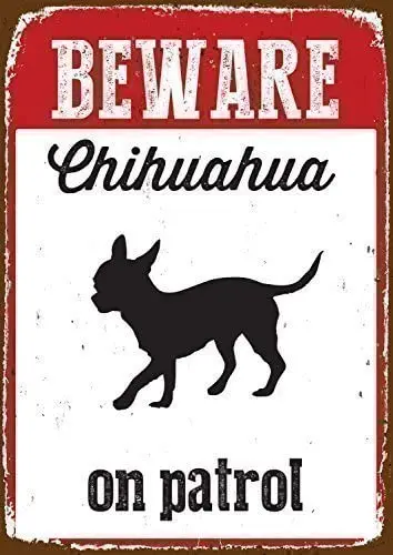 Остерегайтесь чихуахуа в патрульном строительстве, Жестяная Табличка с знаком, предупреждающий знак, Настенный декор, металлическая настенная табличка 20x30 см
