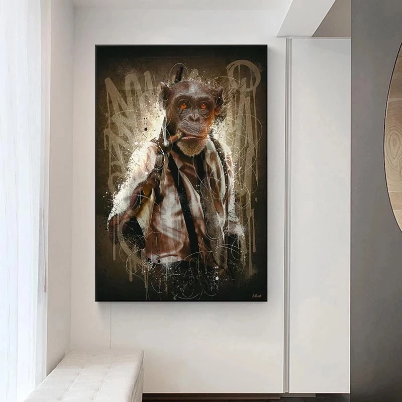 Абстрактный красочный граффити Обезьяна горилла животное холст карт...