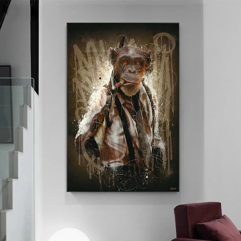 Плакат большого размера с животными курительной обезьяны, орангутан...