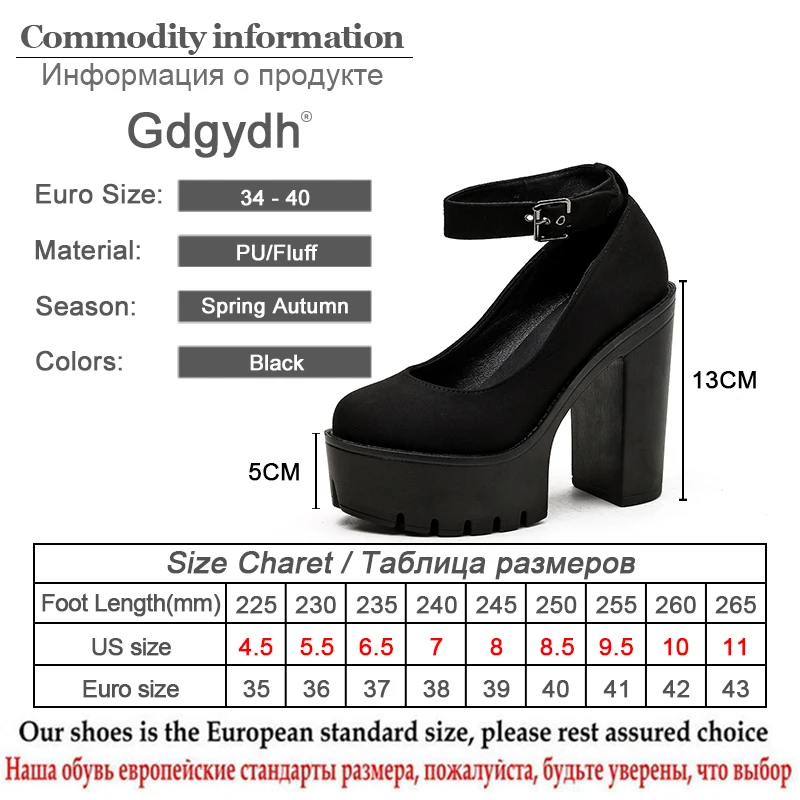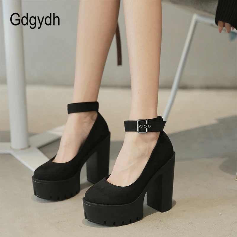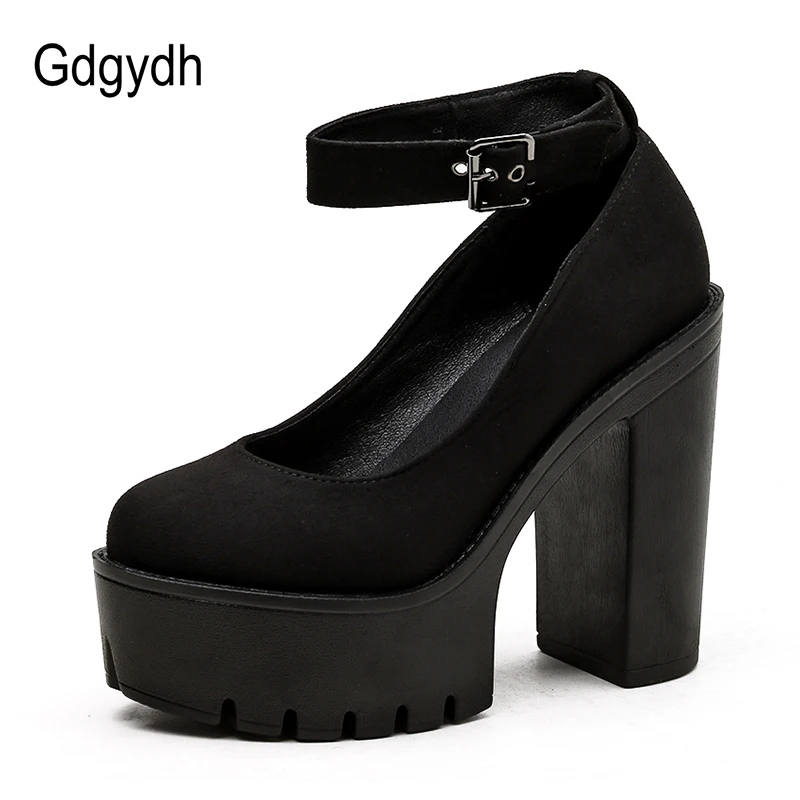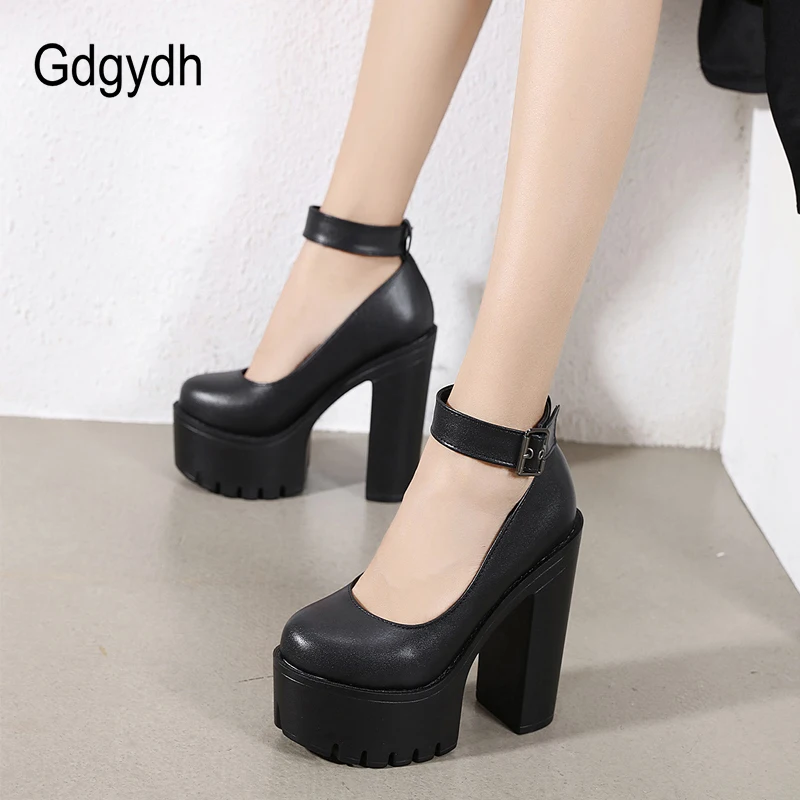 Женские туфли с ремешком на щиколотке Gdgydh, черные, туфли-лодочки в готическом стиле, на платформе, на массивном блочном высоком каблуке, с пряжкой, для ночного клуба, для весныОсени