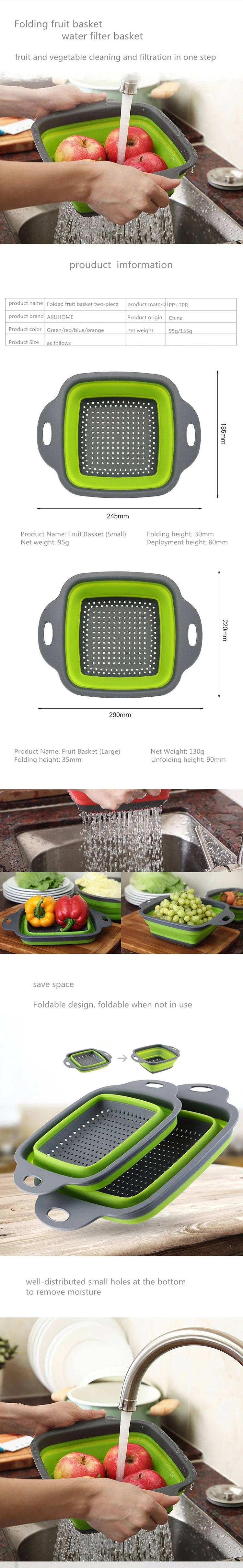 Складная корзина для слива, кухонные инструменты, корзина для сито для фруктов овощей с фильтром, квадратный органайзер, сушилка для хранения