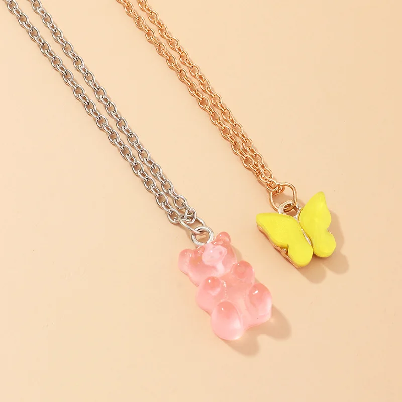 Модное многослойное женское ожерелье красочными бабочками и бантиками; Розовая футболка с мишкой ангел, с изображением букв алфавита, подвески цепи ювелирные изделия, подарок для девочек