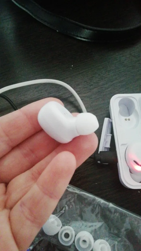 классные!! удобные!!! товар реально хорошего качества. приехали наушники очень быстро, отслеживался на всём пути. доставка отличная. сам товар упакован в транспортный пакет с пупыркой внутри. коробка с инструкцией, зарядка, доп вкладыши, база для зарядки. единственное, я думаю, что пакет вскрыли на нашей таможне, тк пакет был заклеен скотчем, на фото это видно. наушники пришли заряженные, на фото виден уровень зарядки. продавцу огромное спасибо!!! он достоин оценки больше чем 5! буду советовать своим знакомым и друзьям!