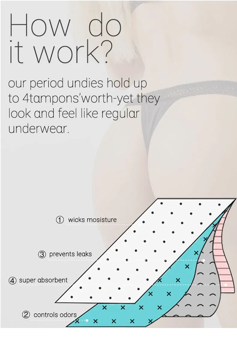 Менструальное нижнее белье, четыре слоя, герметичные, впитывают мен...