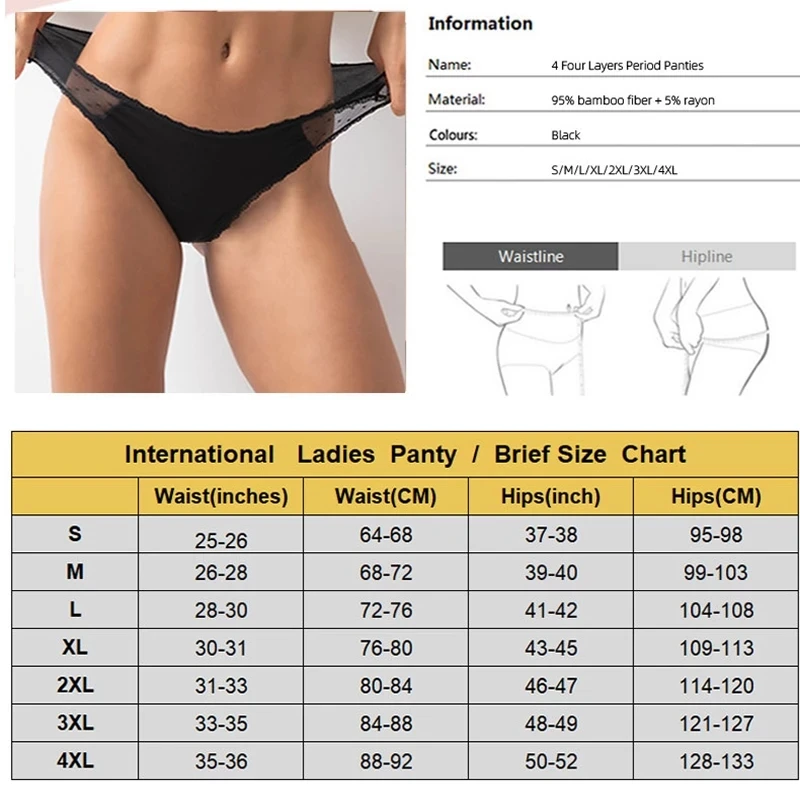 Менструальное нижнее белье, четырёхслойные непротекаемые впитывающи...