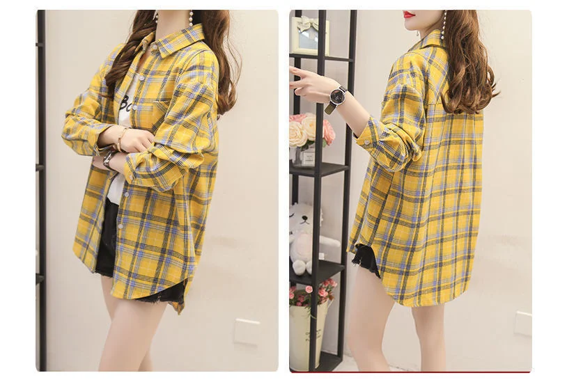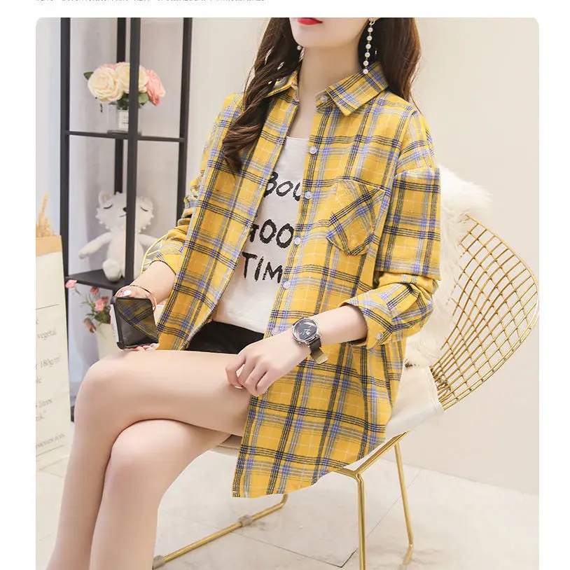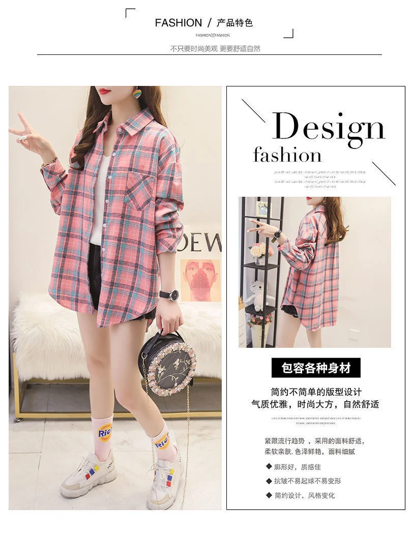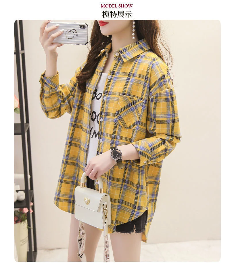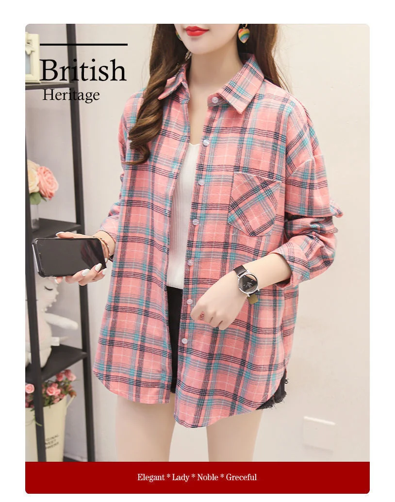 Блузка женская, 2020, свободная ретро-рубашка в клетку, пальто, рубашка с длинным рукавом, женские блузы