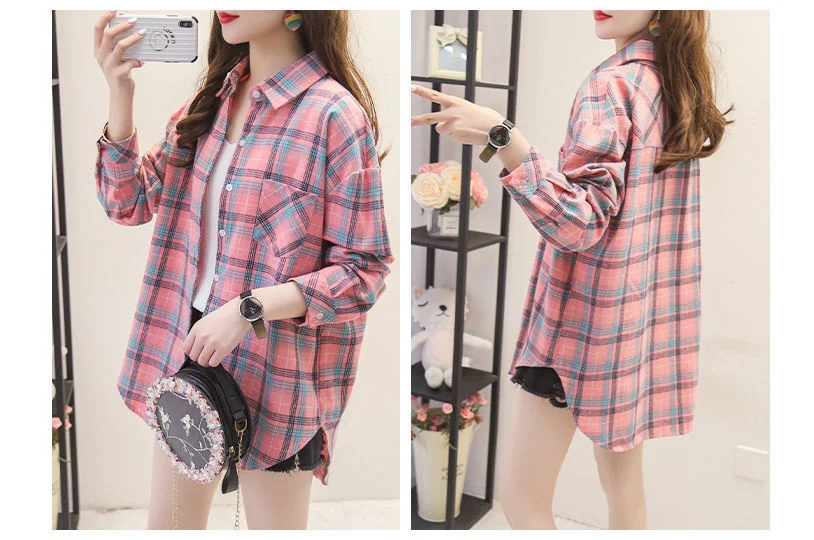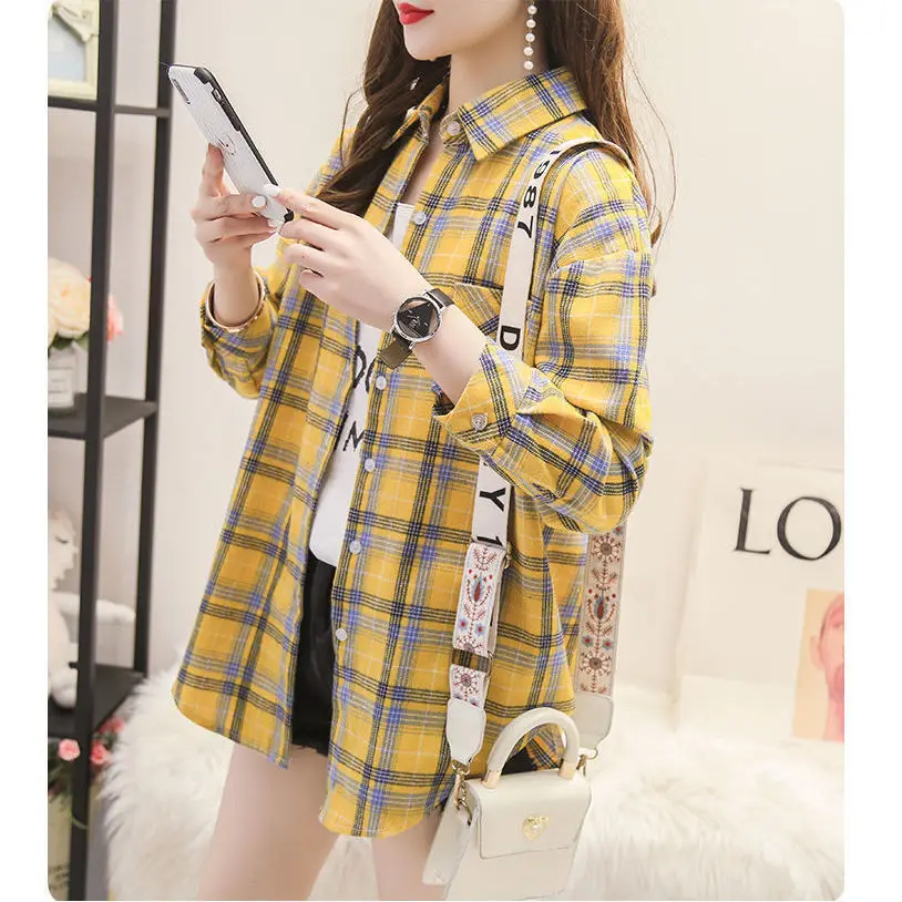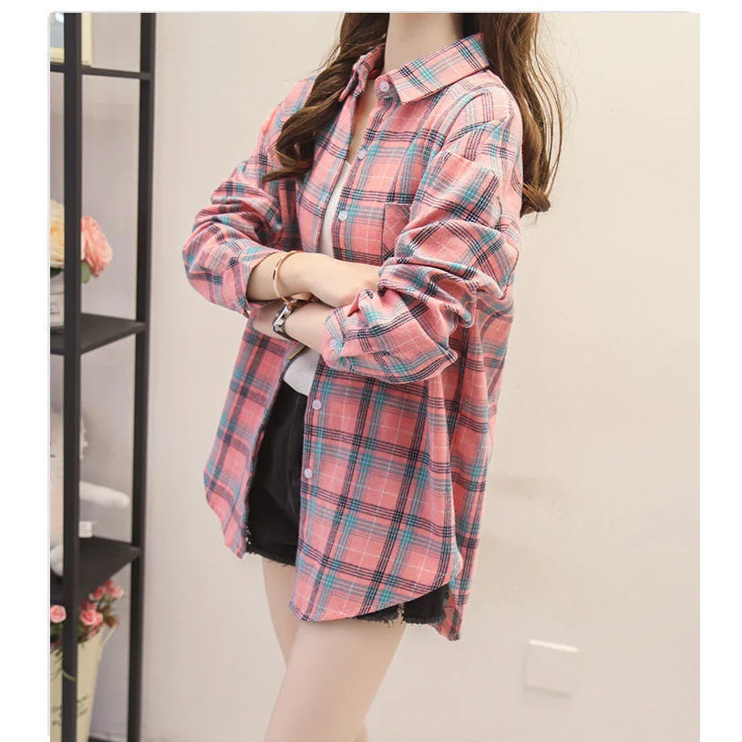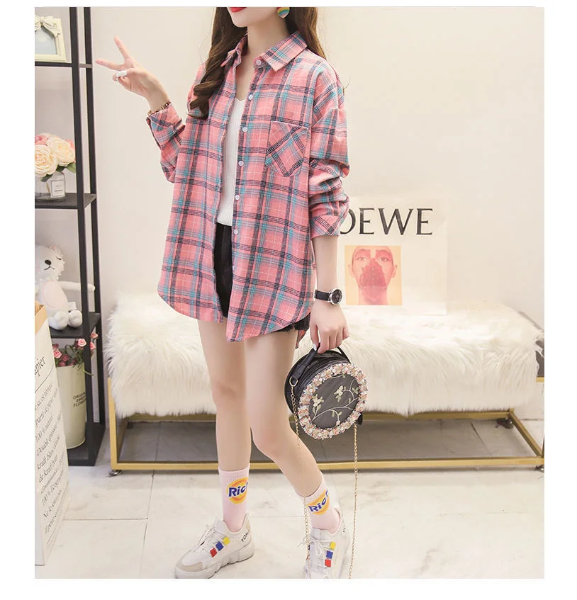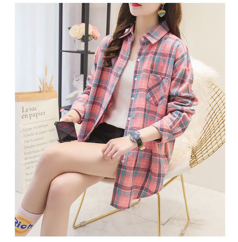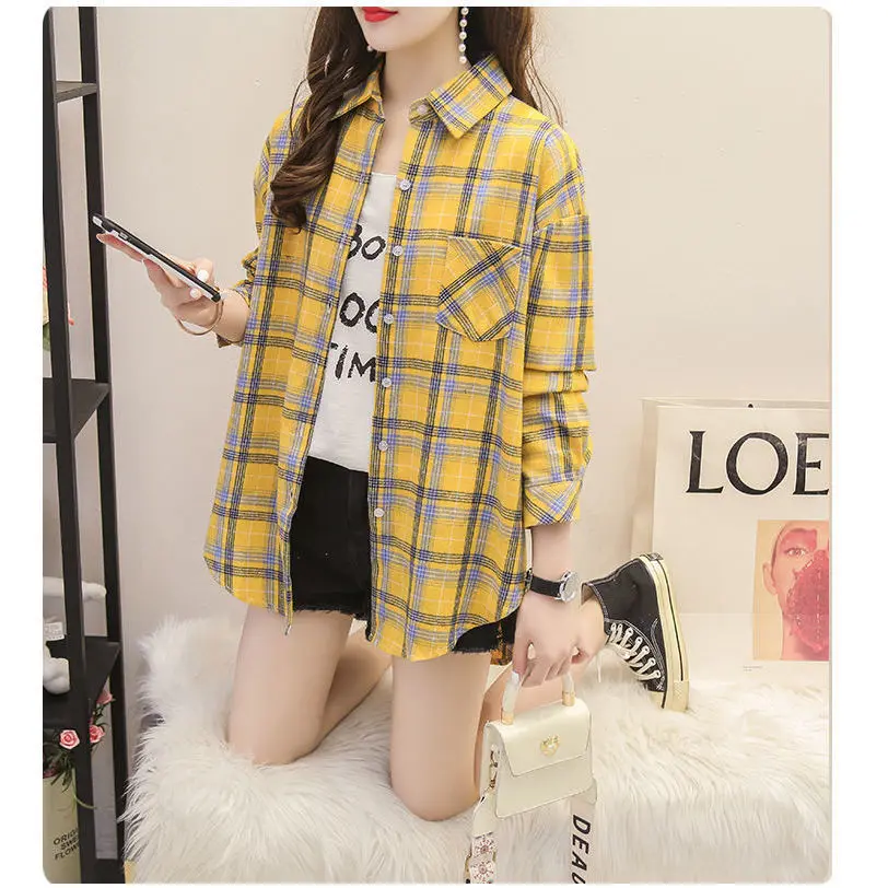 Блузка женская, 2020, свободная ретро-рубашка в клетку, пальто, рубашка с длинным рукавом, женские блузы