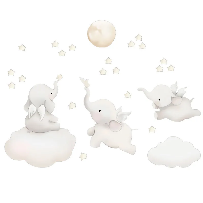 Милые Мультяшные наклейки на стену, в виде облака, звезд, слона, животного, украшение для детской комнаты, в скандинавском стиле, виниловые наклейки на стену