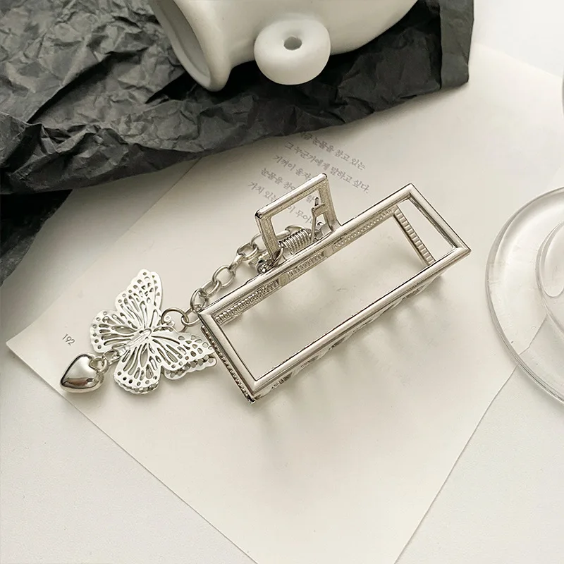 Женская заколка для волос в виде бабочки, серебристого цвета