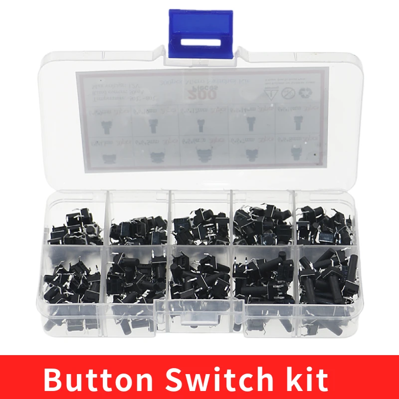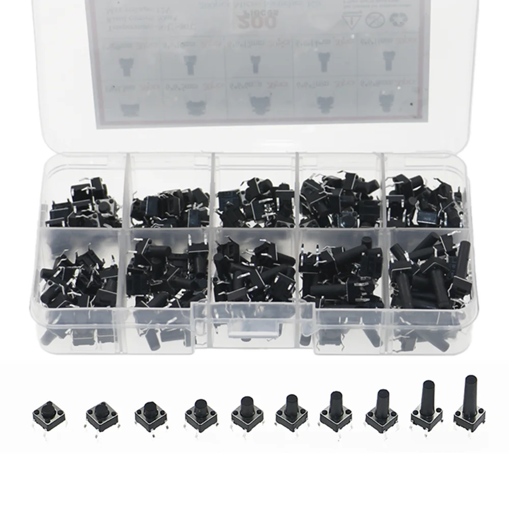 Набор кнопочных мини-переключателей 200 шт.лот, 10 значений, 6*6*568101216 мм для рисоваркителефонапечатной платы, используется клавишный переключатель
