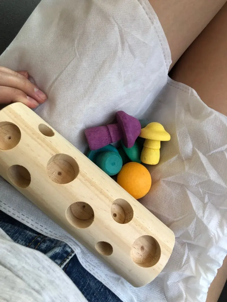 Бревно и грибочки классные, НО! Дырочки плохо обработаны от заноз. Ребёнок, трогая пальчиками наловит кучу. И сами грибочки выпадают из углублений, надо углубить их. Плюс от грибочков испачкалось само бревно. Придётся мужу немного доработать