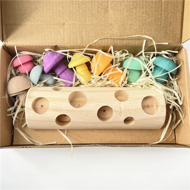 Деревянные игрушки Монтессори, детские цветные грибы в форме размера, сортировочные игры, детские развивающие материалы, обучающие игрушки для мелкой моторики