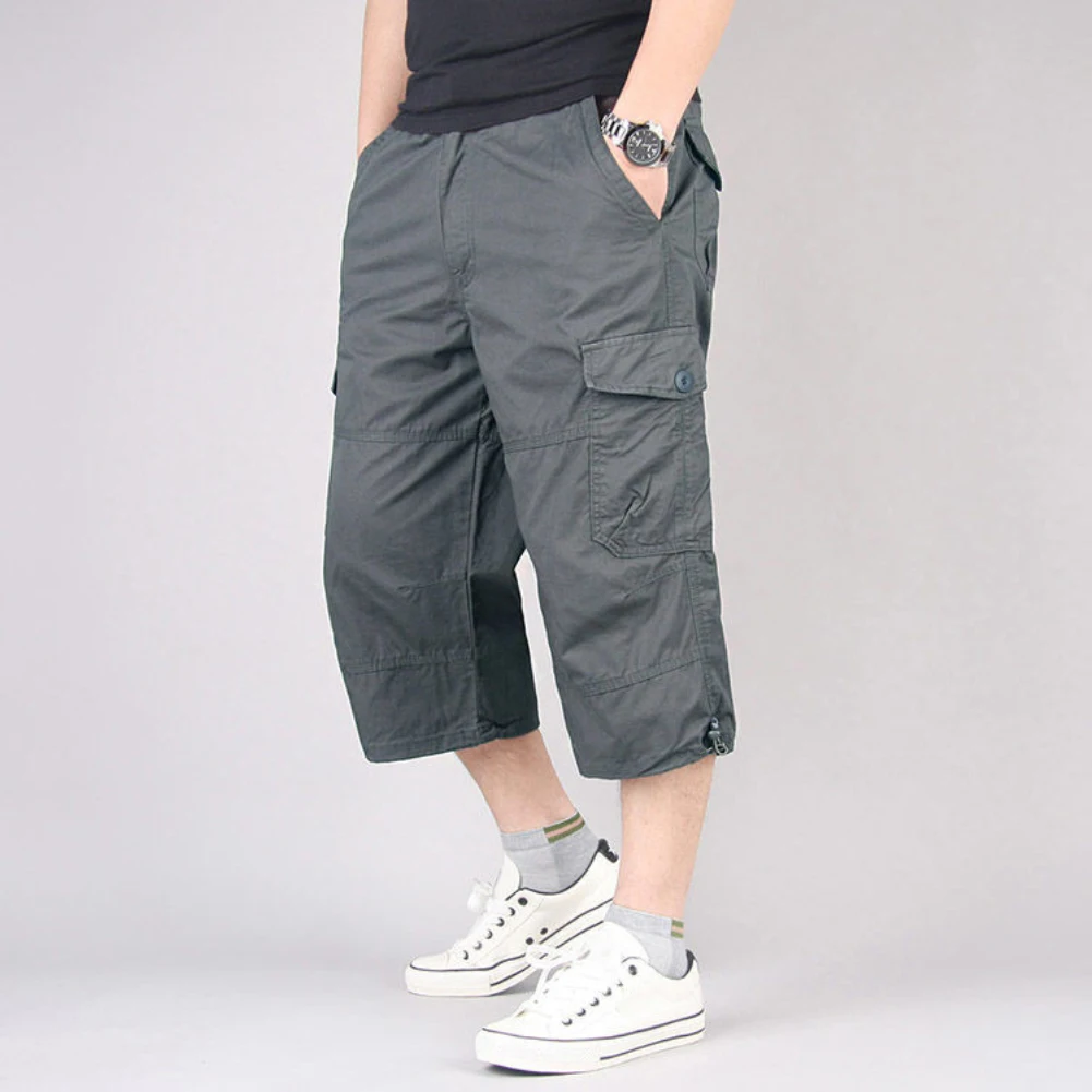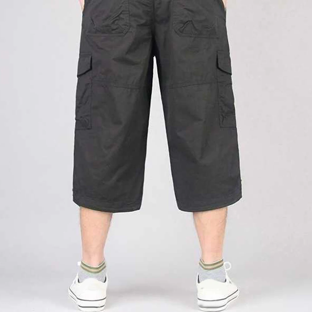 Мужские прямые укороченные брюки, рабочие штаны, Свободные повседневные однотонные дышащие прямые брюки-Капри с карманами