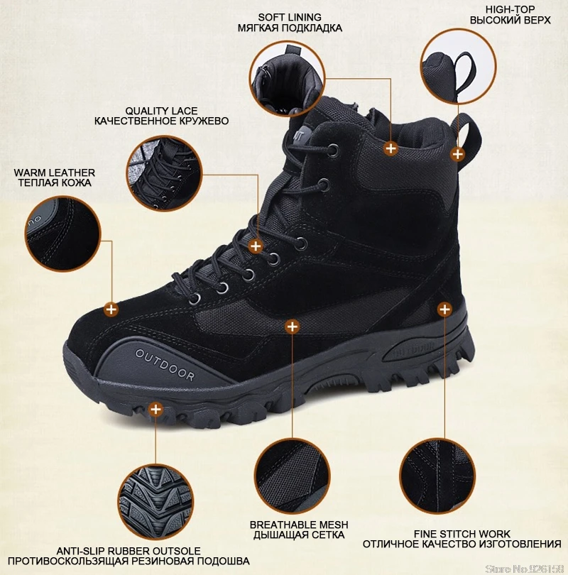 Ботинки мужские из натуральной кожи, тактические, зимние, для походов, кемпинга, альпинизма