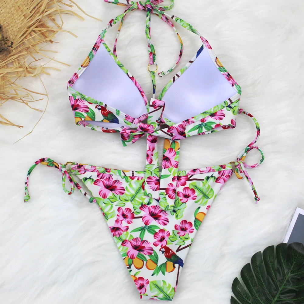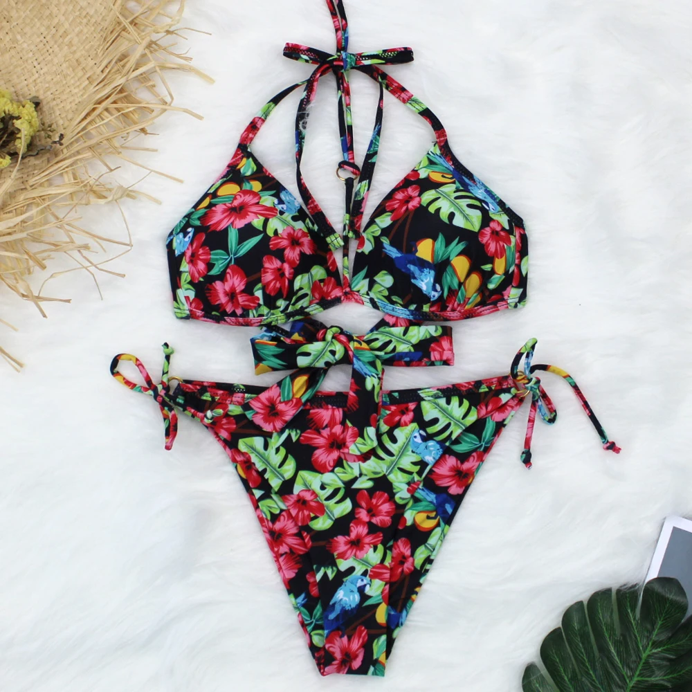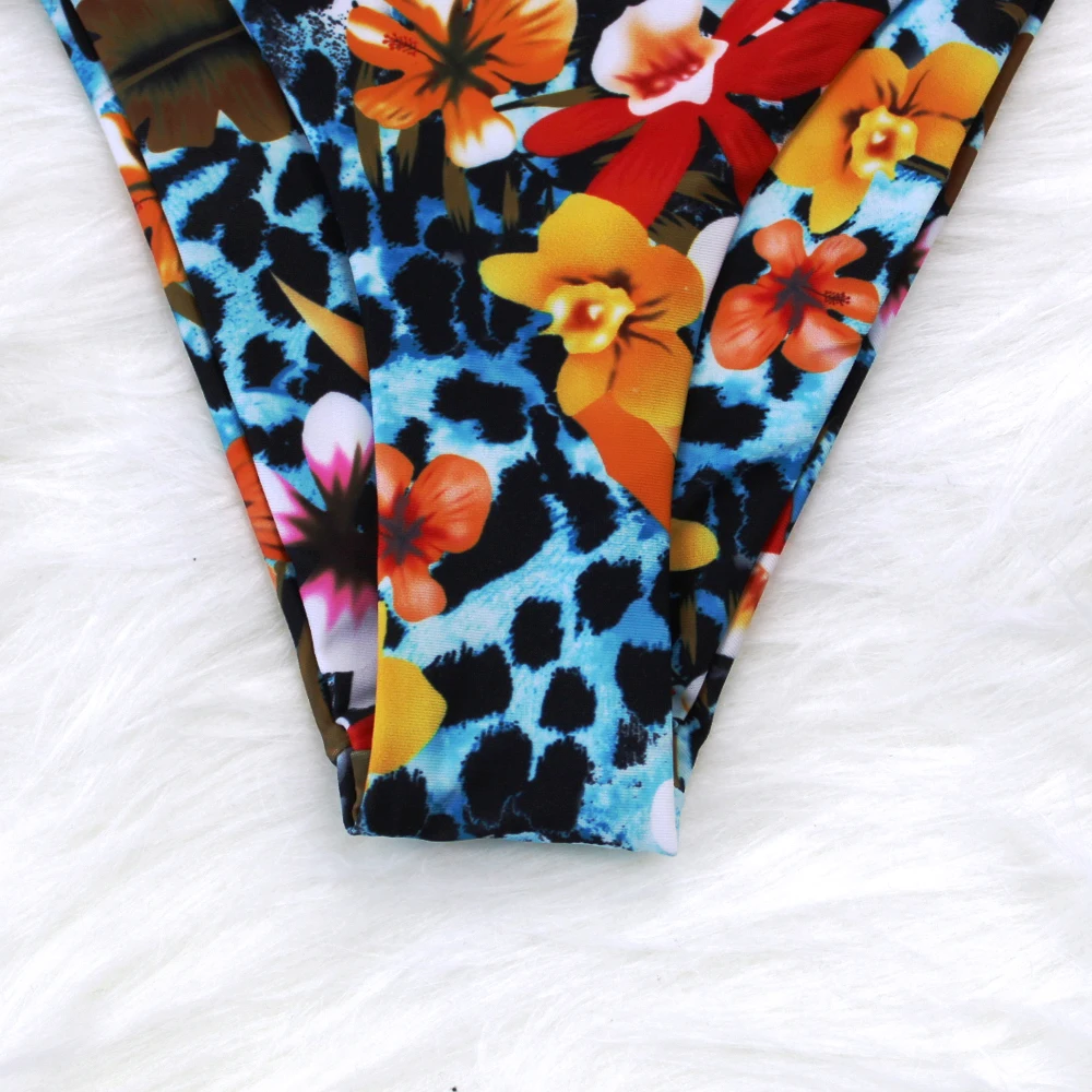 Женский леопардовый купальник-бикини с чашками пуш-ап