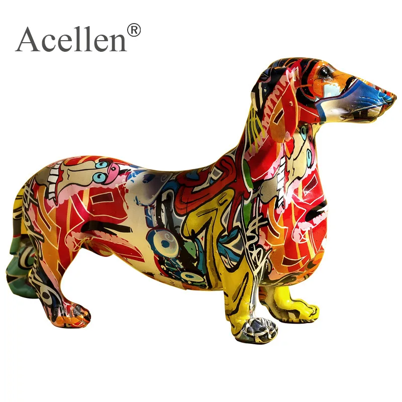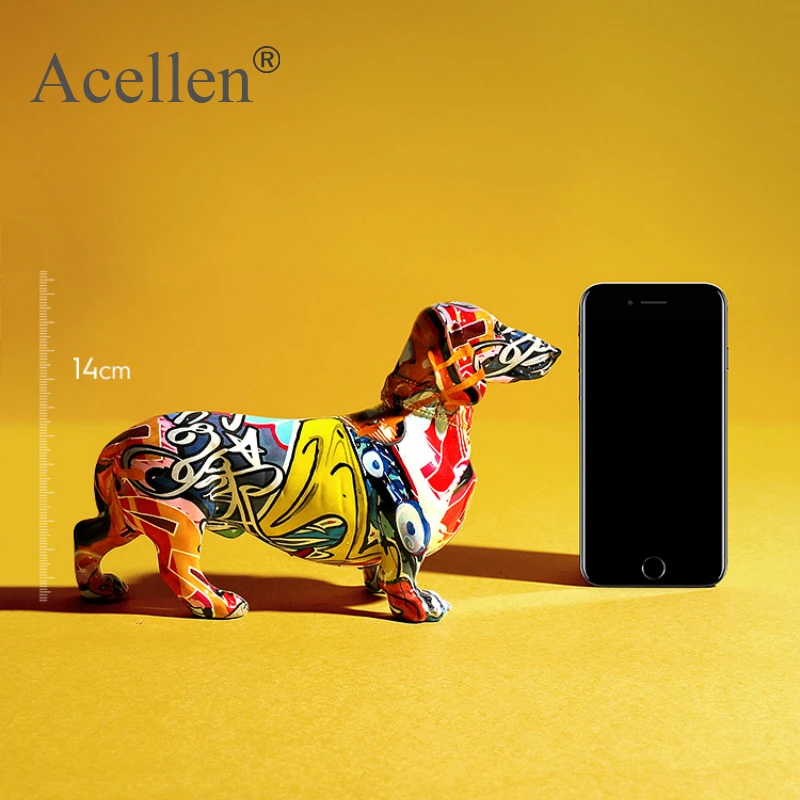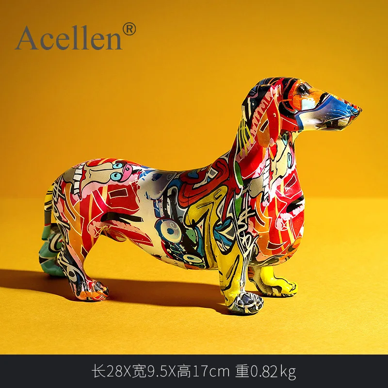 Красочная фигурка таксы, собака, домашний декор, современный винный шкаф, офисный декор, настольные поделки из смолы, миниатюрная статуя, подарок