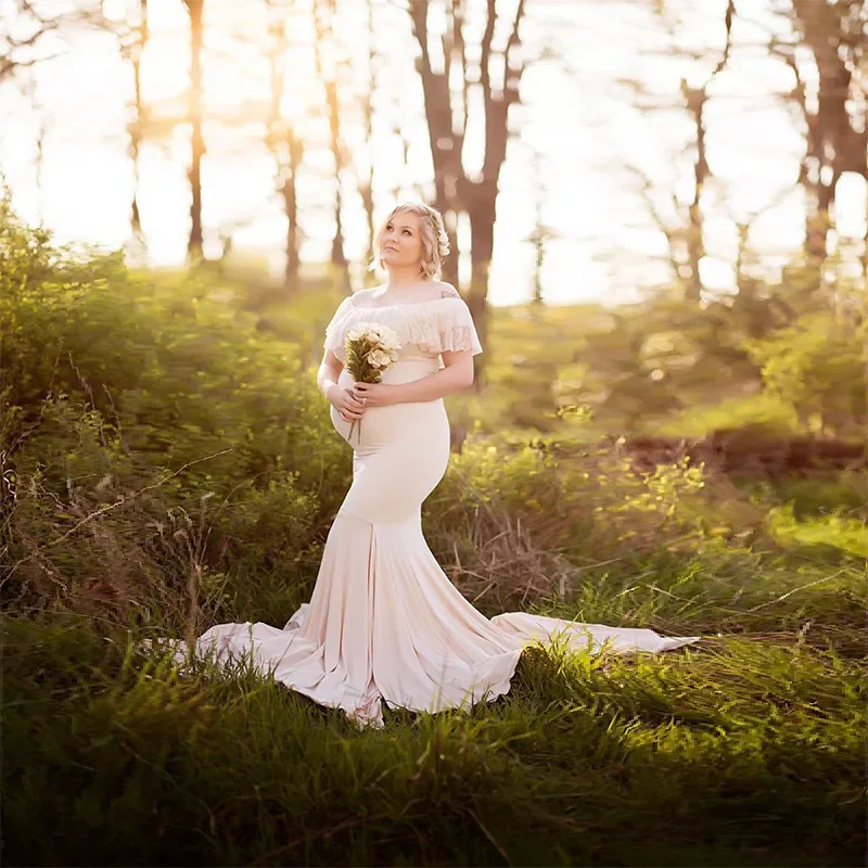 Сексуальные Платья для беременных, с открытыми плечами, кружевное длинное платье для беременных, Макси-платье для фотографий, одежда с принтом стрельбы