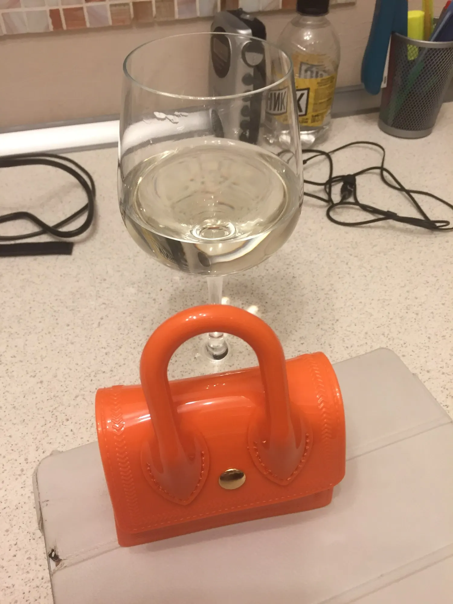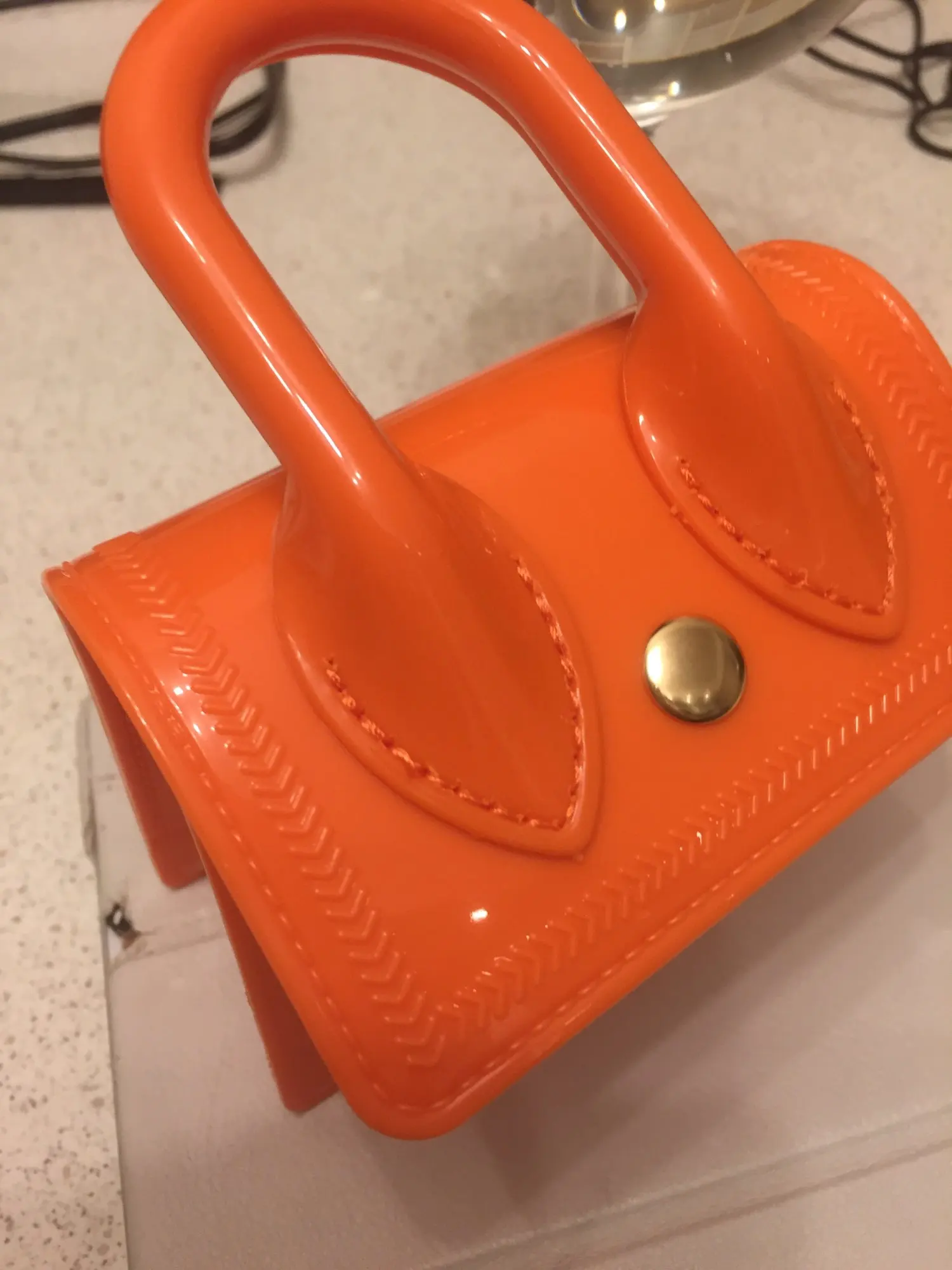 Сумочка сделана оч качественная, но реально маленькая. Стоит на планшетнике, чтобы понимали размер. Телефон туда не положишь. Максимум - ключи, ключи от машины, пудра. К сумке идет золотая цепочка в тон. Материал сумки - блестящий пластик. Мне понравилась для моих поездок.
