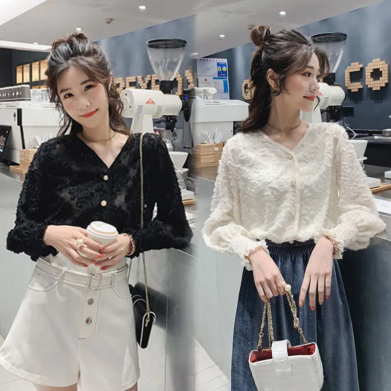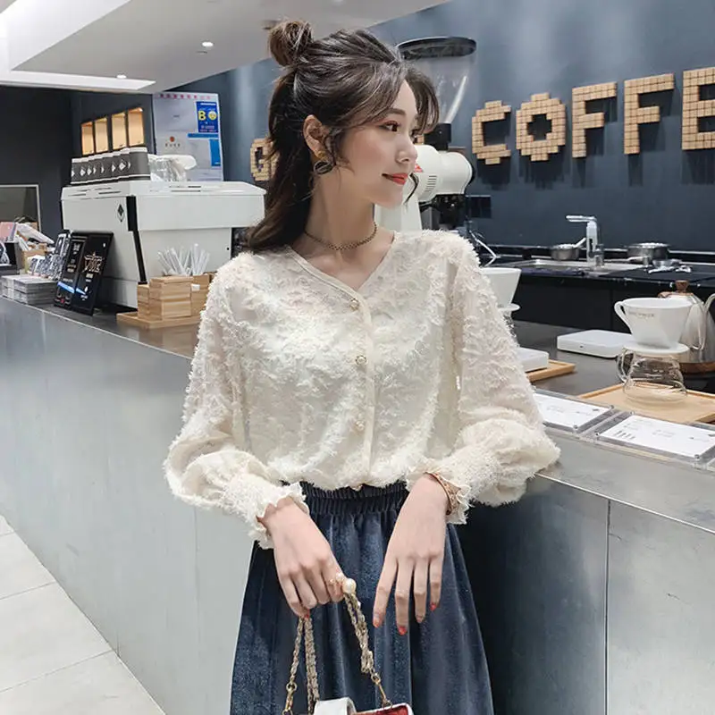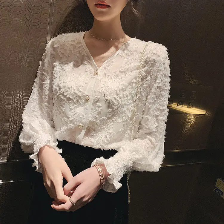 Женская шифоновая рубашка с V-образным вырезом, рукавом