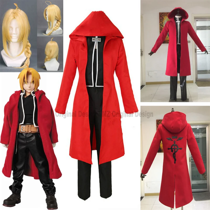 Цельнометаллический костюм для косплея алхимика из Аниме Эдвард Элрик костюм для косплея цельнометаллический пальто с капюшоном для алхимика плащ топ брюки пояс на заказ