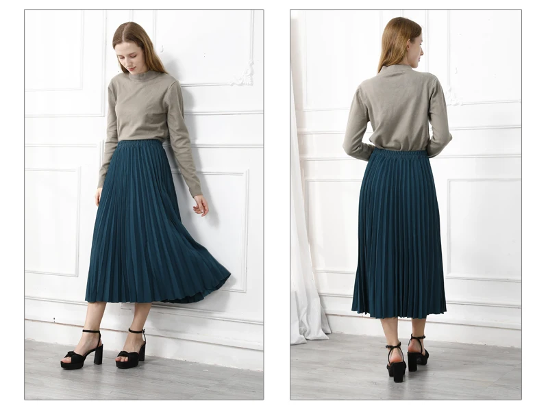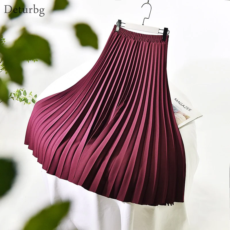 Женская однотонная плиссированная юбка-трапеция в Корейском стиле, элегантная плотная облегающая юбка с завышенной талией, длинная юбка миди, весна 2021 Sk647