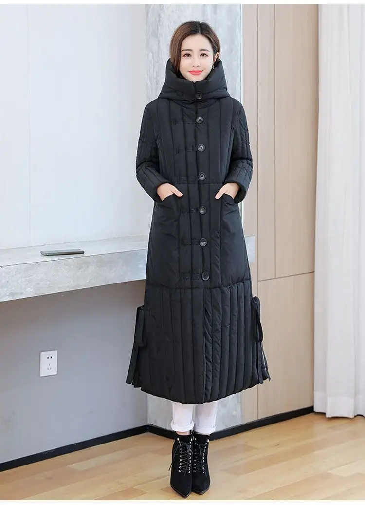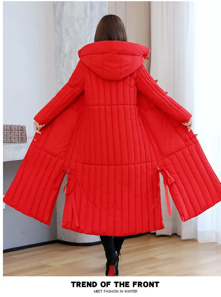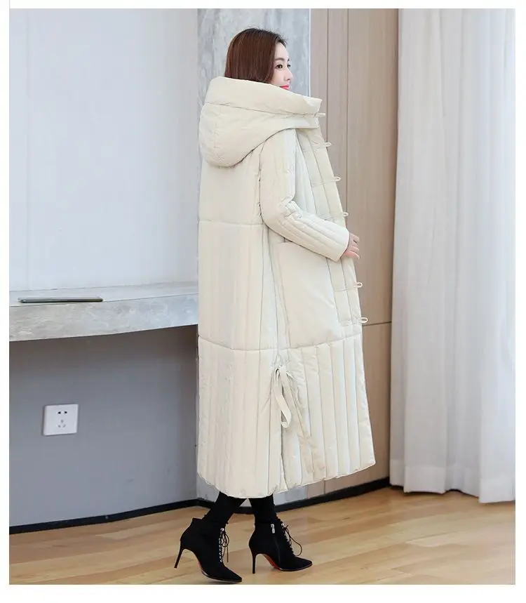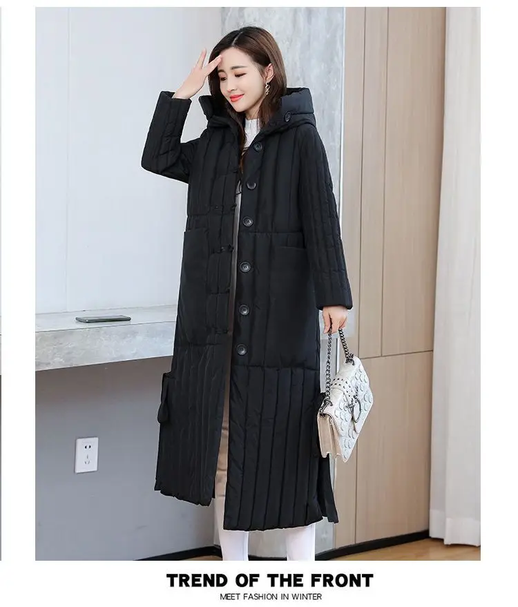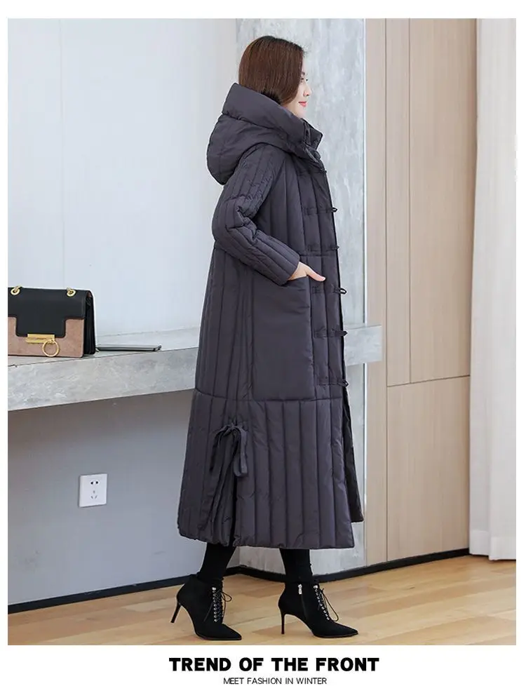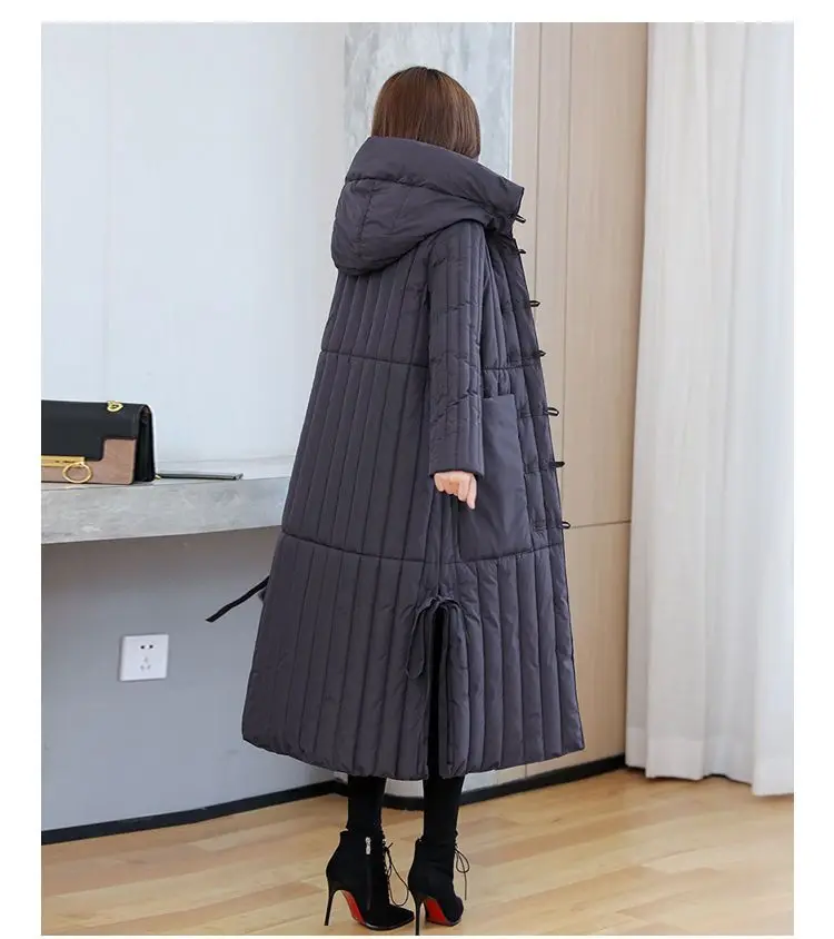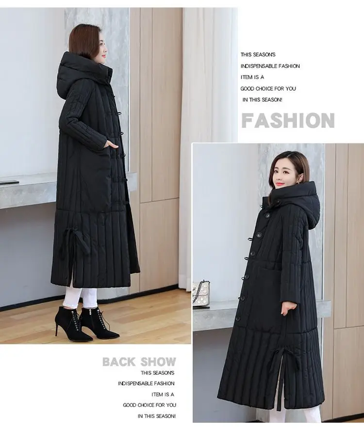 Длинное зимнее пальто в стиле оверсайз для женщин, модные парки с капюшоном, Толстая Теплая стеганая одежда, Женская свободная куртка с петлей, плюс 3XL