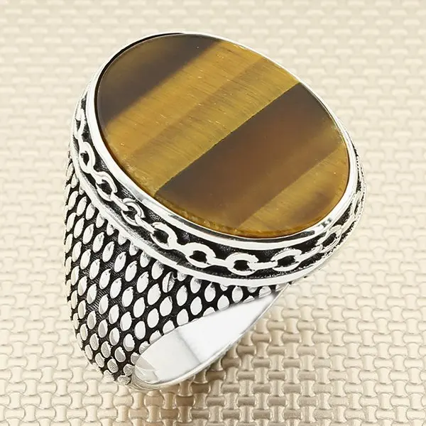Прямой Овальный коричневый тигровый глаз мужское кольцо с камнем с цепочкой мотив Твердое Серебро 925 пробы аксессуары долговечное качество Новинка