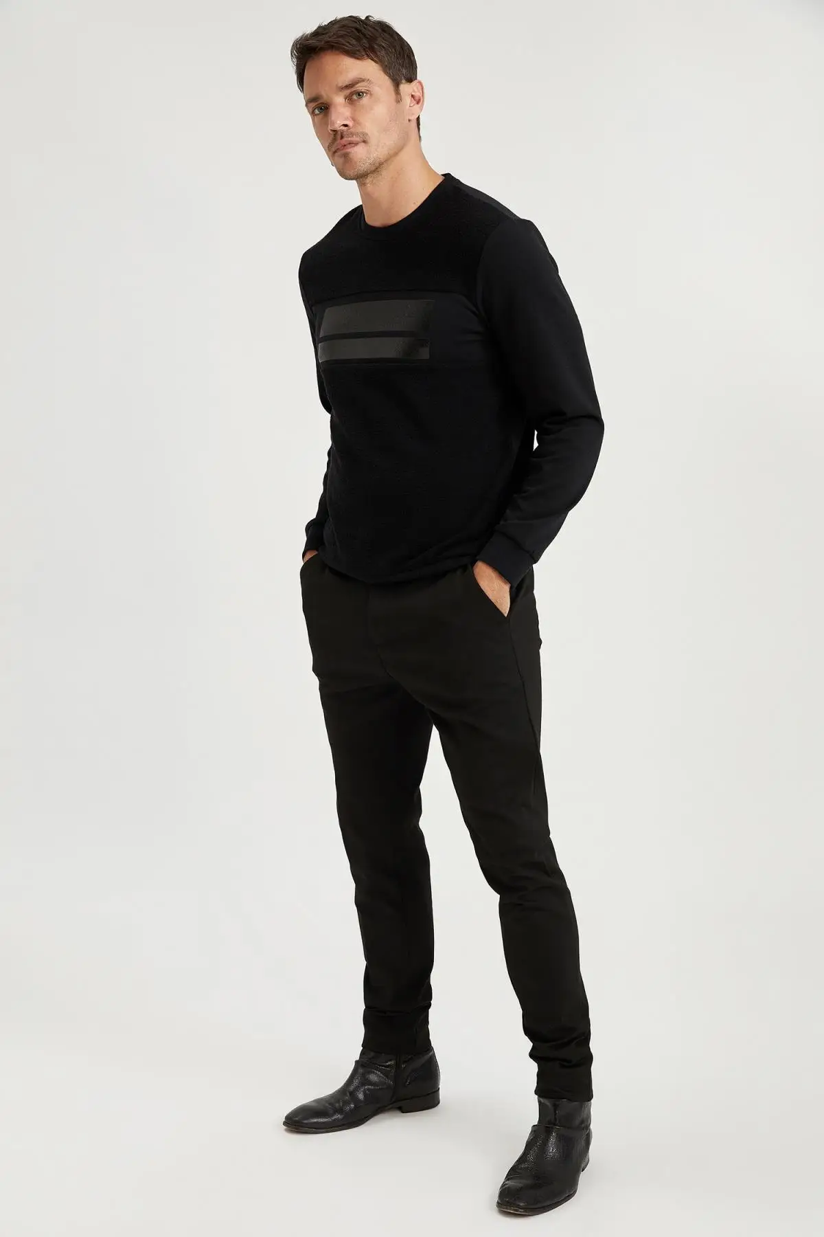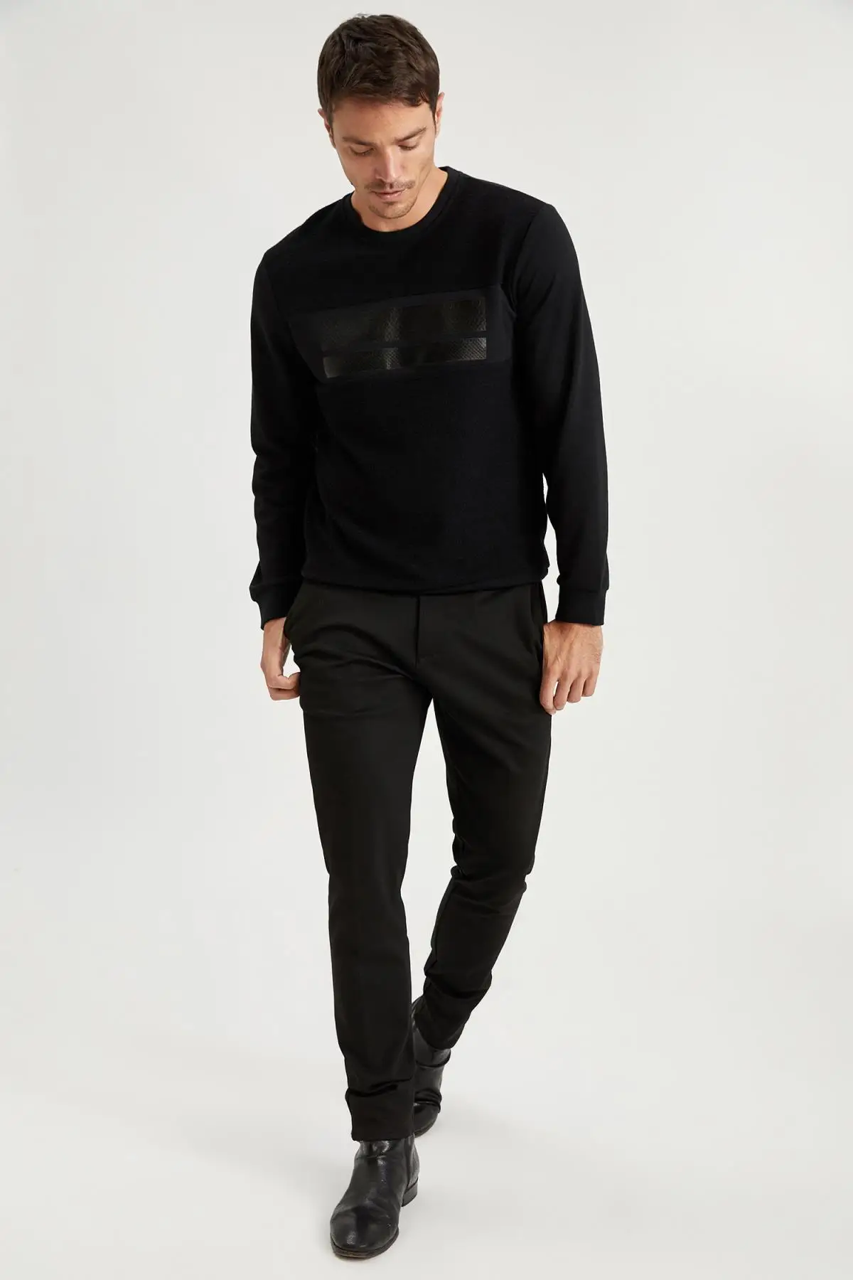 DeFacto зимние мужские трикотажные блочным узором Slim Fit толстовка с круглым вырезом спортивный образ на каждый день теплая Casual-S9995AZ20WN