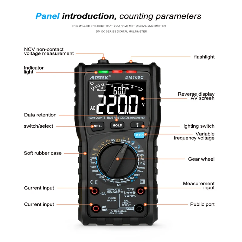 Цифровой мультиметр MESTEK, профессиональный, 10000 отсчетов, True среднеквадратичный тестер, многофункциональный аналоговый мультиметр, тестер тока